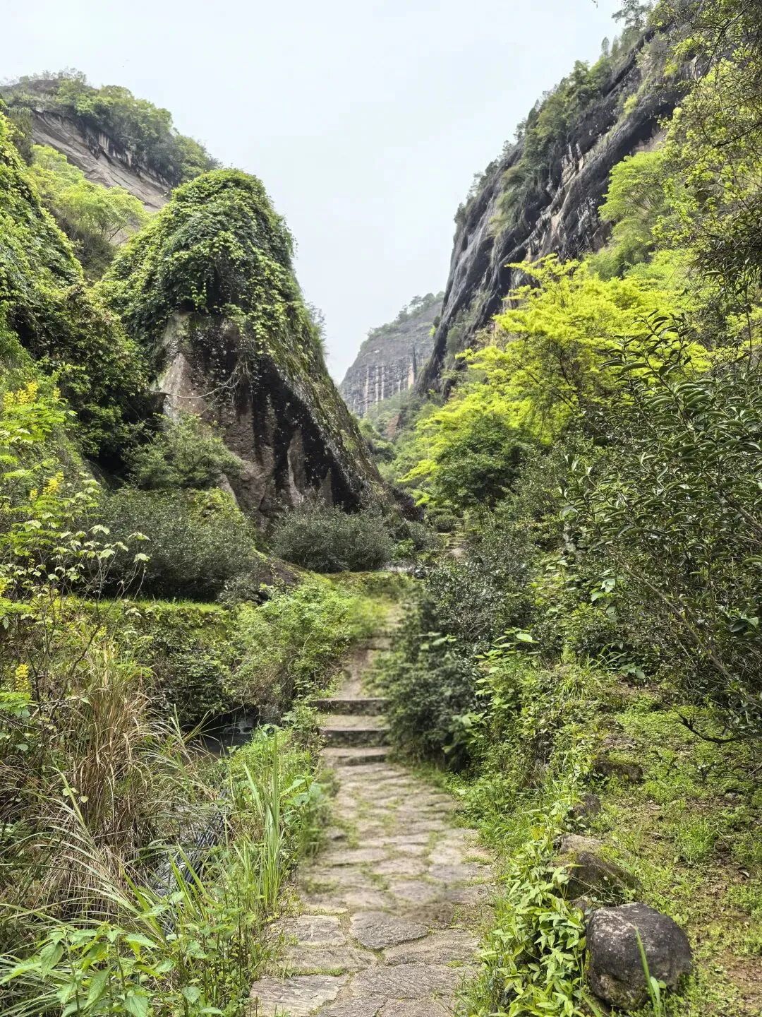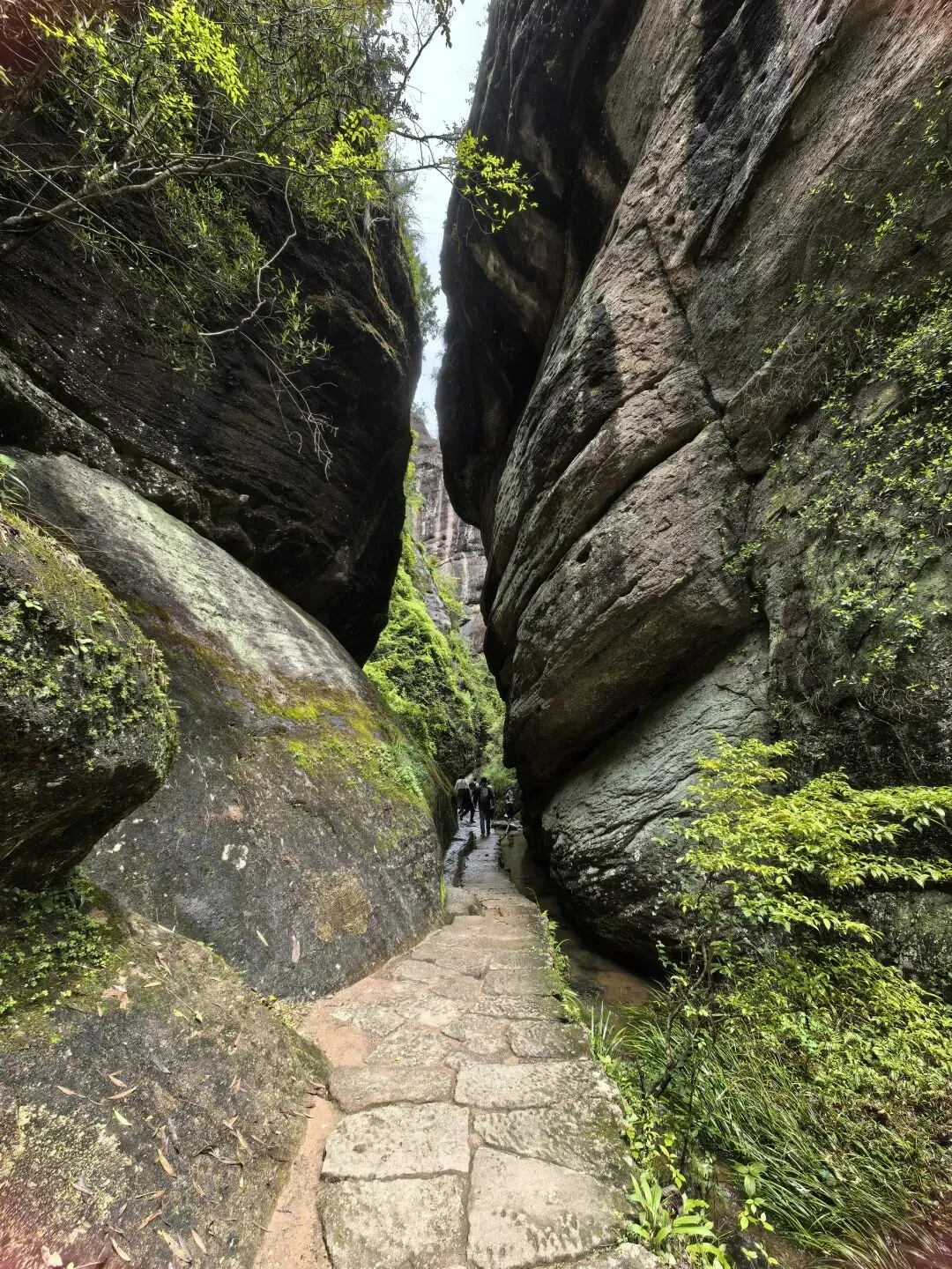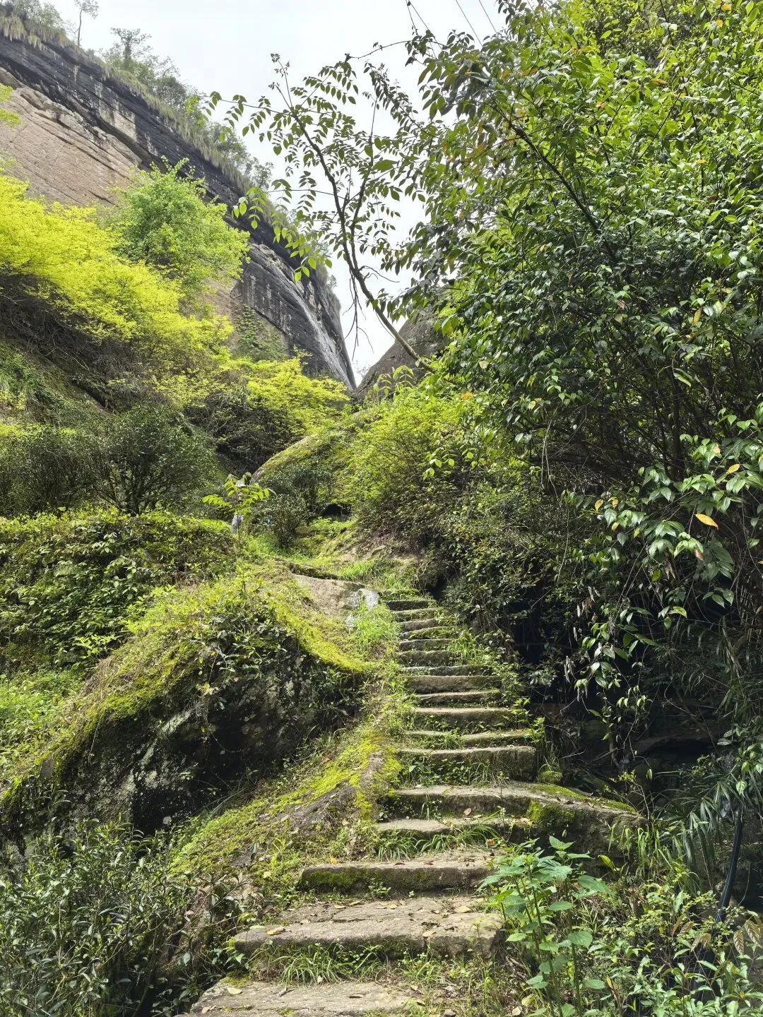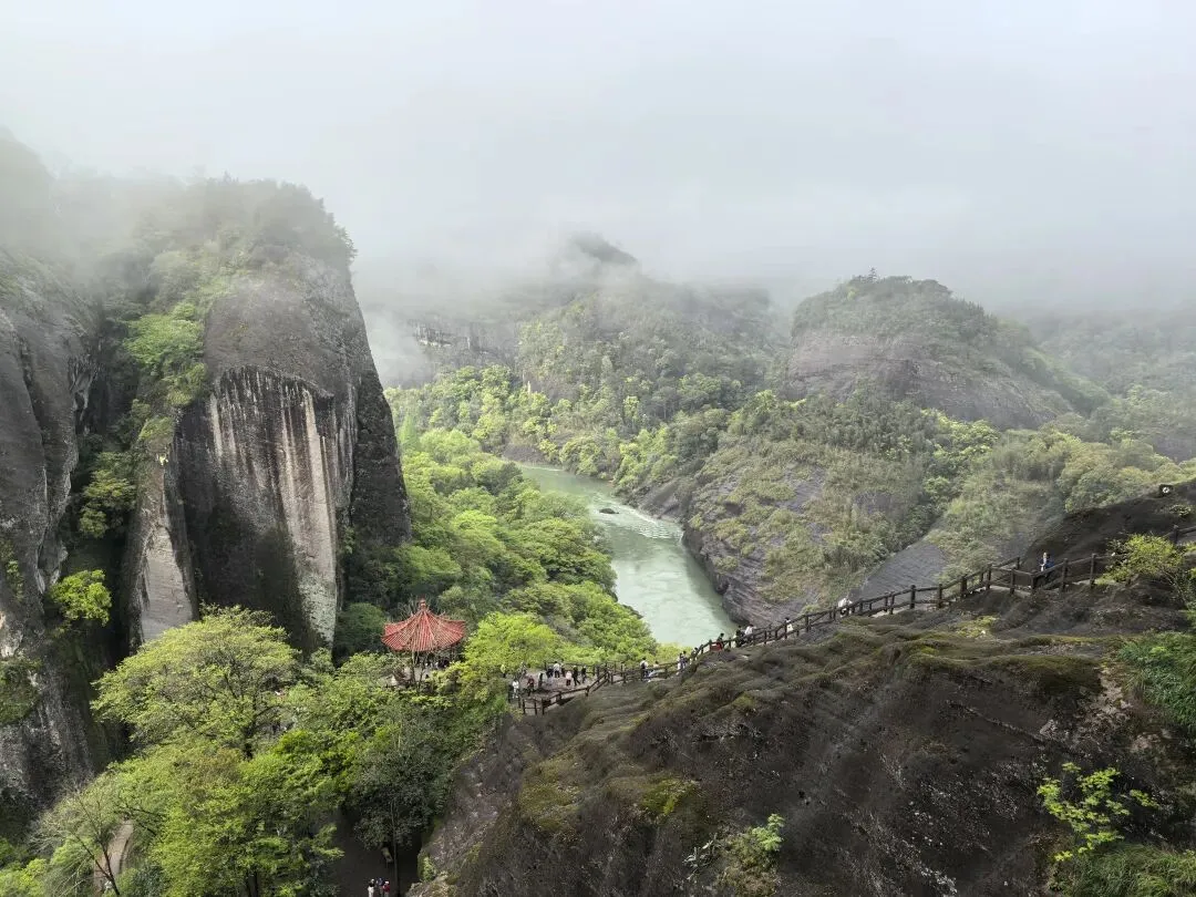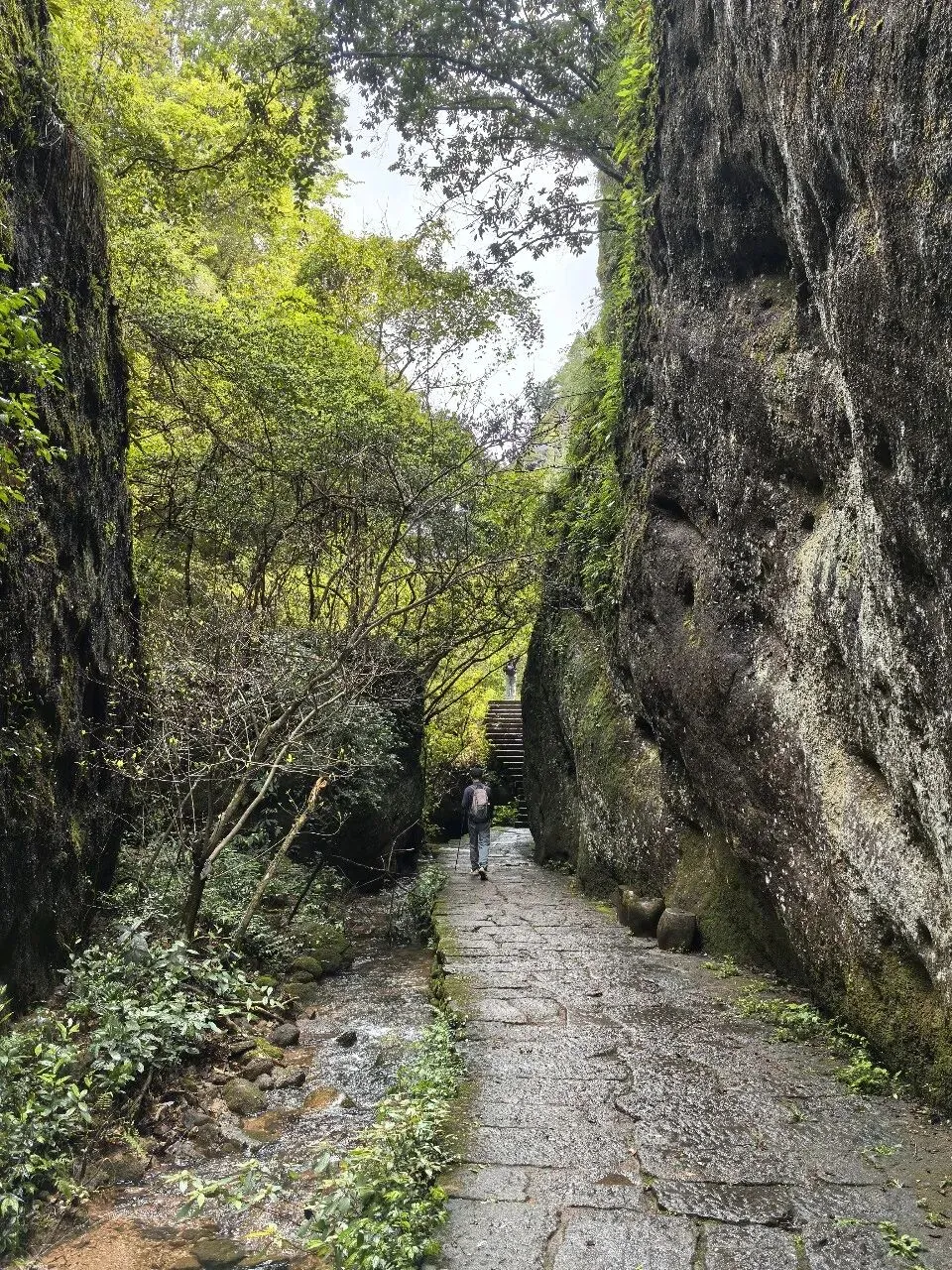 上午:起早避开人流先爬天游峰(武夷第一胜境)。爬848级台阶(部分坡度70°),登顶约1小时,俯瞰九曲溪全景,雨后常有云海。登顶后走洞天仙府漫游道到大红袍景区(用时约3小时)。