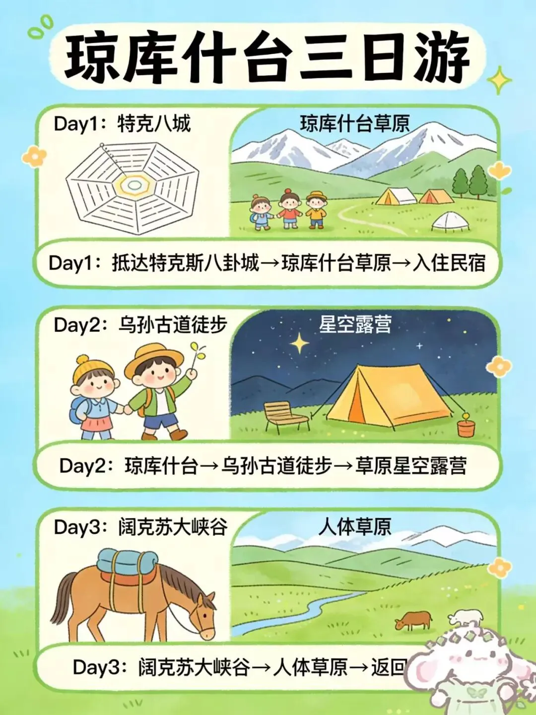 Day1:抵达特克斯八卦城→琼库什台草原→入住民宿