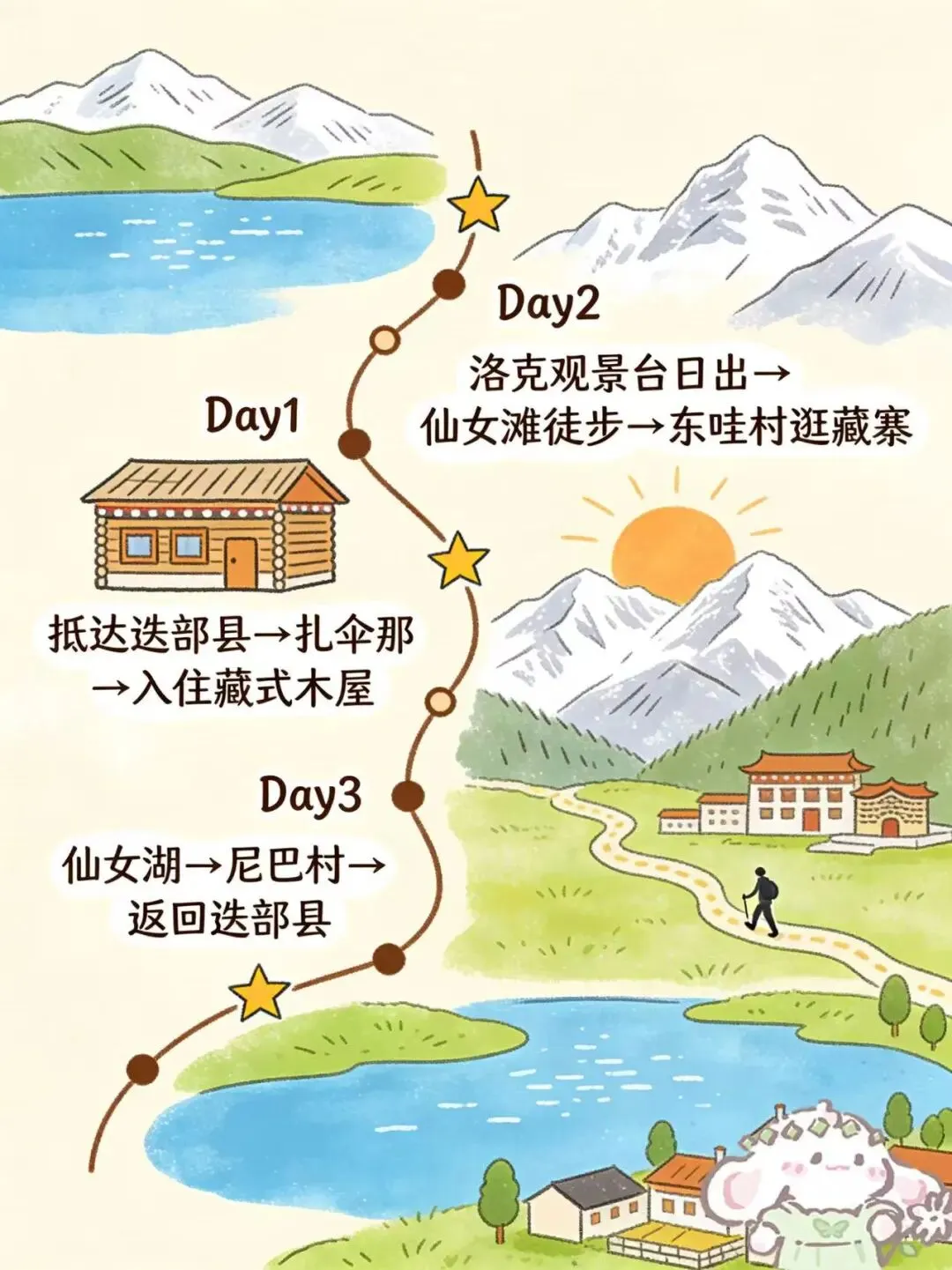 Day2:洛克观景台日出→仙女滩徒步→东哇村逛藏寨