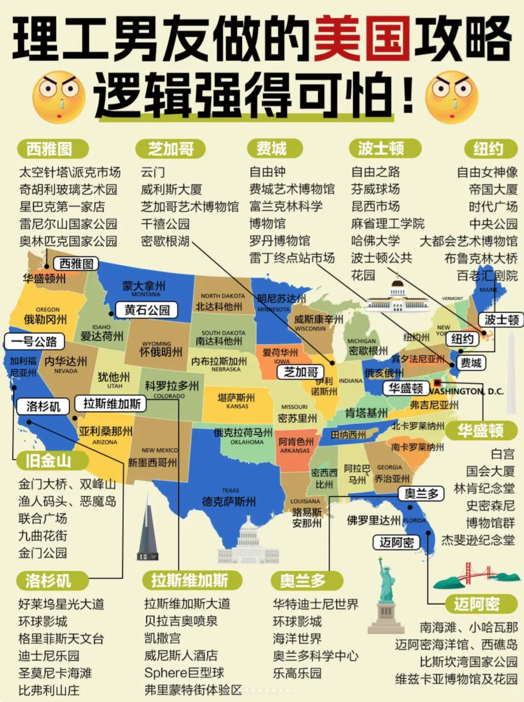 美国50个州1个直辖特区,最全旅游攻略(保存备用)