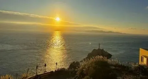 ★傍晚6点多直接下楼看日落,可惜那天乌云偏多,日落景致一般。民宿下来后往左走,7分钟左右是另一个码头,沿路的风景很好,还有北纬30°中国行的打卡点。