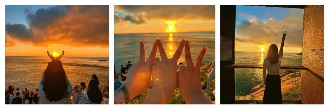 ★下午15点,下楼赶海,我们住的民宿楼下就有一个石滩,可以玩水,赶海。楼下玩好以后,就出发去了东边的沙滩,小朋友在沙滩玩,我们去日落打卡点了。沿途经过无人村,那边也有一个沙滩。从民宿出发大概走半个小时左右。然后继续往上,到了日落打卡点,可惜还是被云遮住了一大半,没有看到最美的样子。