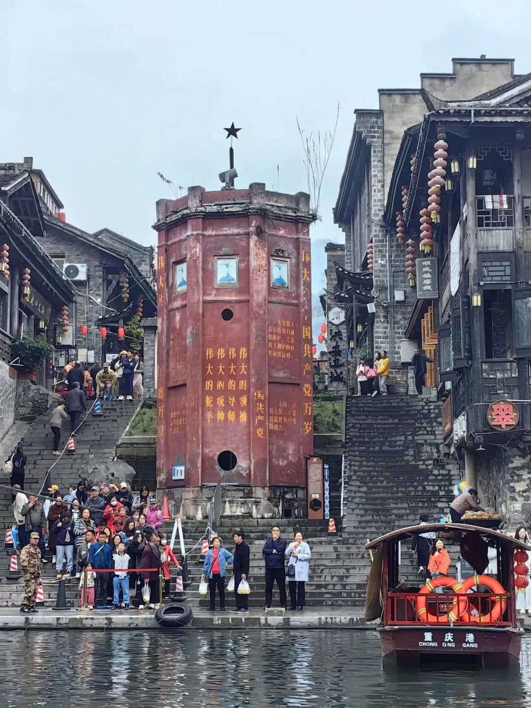 · 下午:逛古镇主街→坐拉拉渡(2元)到重庆洪安古镇→打卡三省界碑→在白塔下发发呆