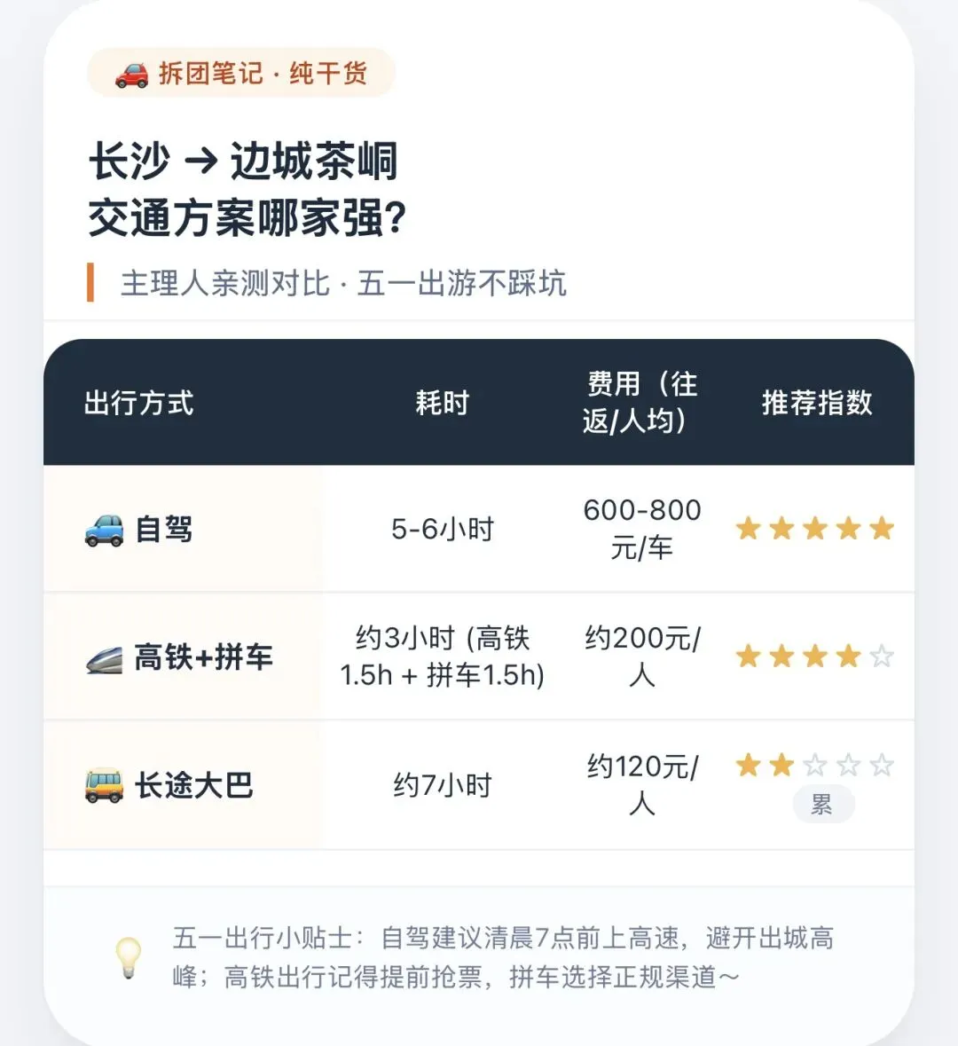 🚗 长沙出发·交通方案
