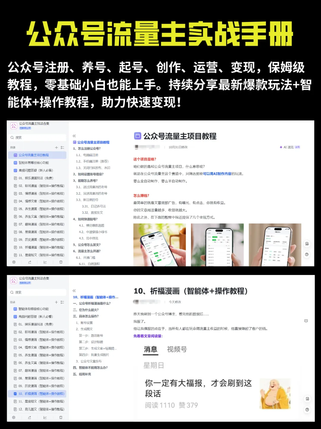 请在文末评论【流量主】,免费领取一份《公众号流量主实战手册》,小白入门必看。