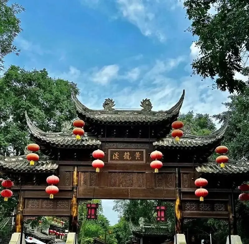 🏞️ 必游景点深度解析 一街三寺:黄龙正街上的古龙寺、镇江寺、潮音寺形成了 “街中有庙、庙中有街” 的全国罕见格局。其中古龙寺最古老,以古寺、古戏台、古榕树 “三古” 著称,寺内有奇特的 “树裹庙” 景观。 古龙寺:这里有棵千年古榕树,树根盘绕着一座土地庙,被当地人称为 “树裹庙”,是寺内一大奇观。 黄龙溪廊桥:古镇标志性景观,红柱灰瓦的木质长廊横跨水面,是拍摄人像和风景的绝佳取景点。 龙潭广场:古镇核心区的下沉式广场,周围环绕古建筑,适合散步和拍照。 三县衙门:历史上的 “一脚踏三县” 之地,是了解当地独特历史的窗口。 05
