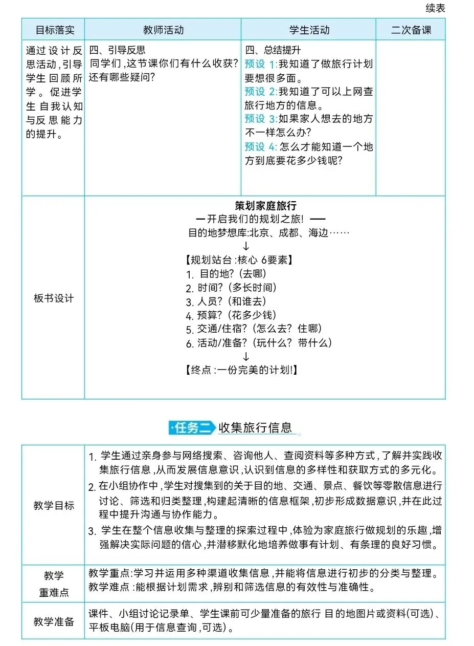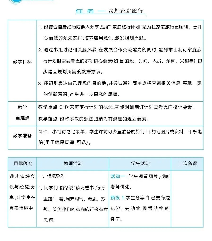 3. 家校协同:鼓励家长参与孩子的计划制定过程,提供真实的旅行经验与信息支持,和孩子一起沟通完善计划。
