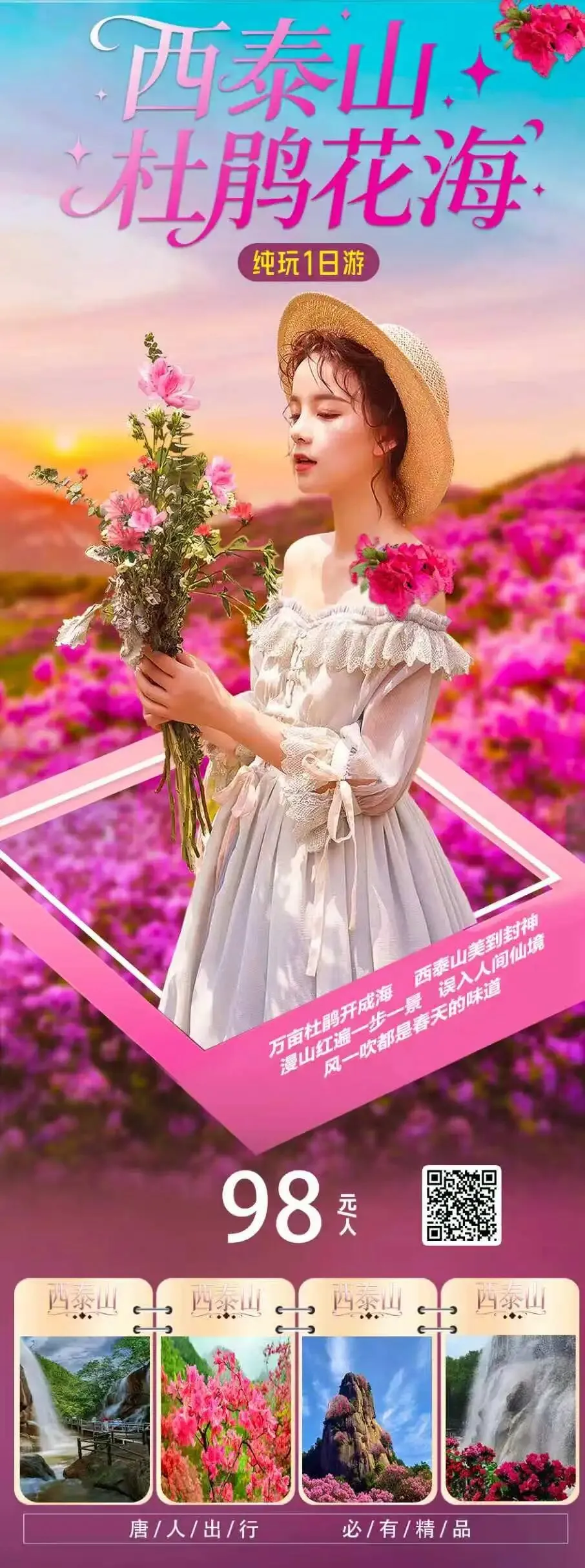 ❸洛阳西泰山杜鹃花海1日游💰车费:98元/人⏰团期:4月25日