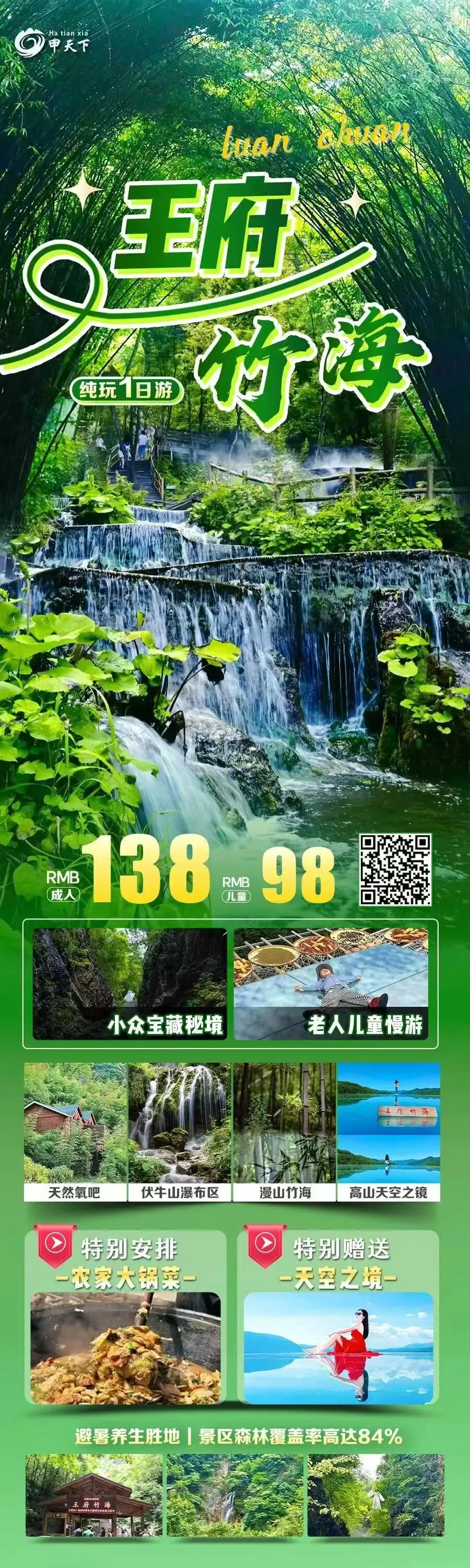 ❾王府竹海1日游💰成人:138元/人💰儿童:98元/人⏰团期:4月25日(特价最后一期)