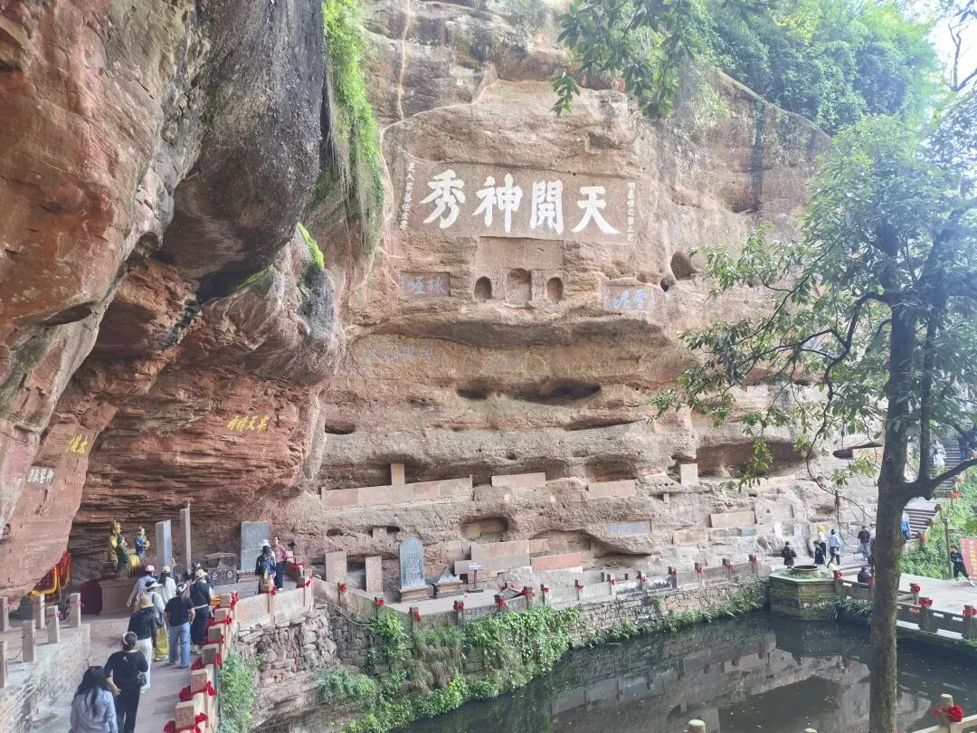 真仙洞府:丹霞洞穴+大量摩崖石刻,“天开神秀”大字