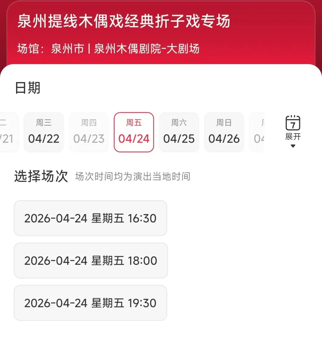 🎫 购票时间:泉州木偶戏票很热门,需要抢,一般每周四、五晚20:00左右会放下周时间段的门票,公众号也会推送演出预告,至少提前3天购买哦!