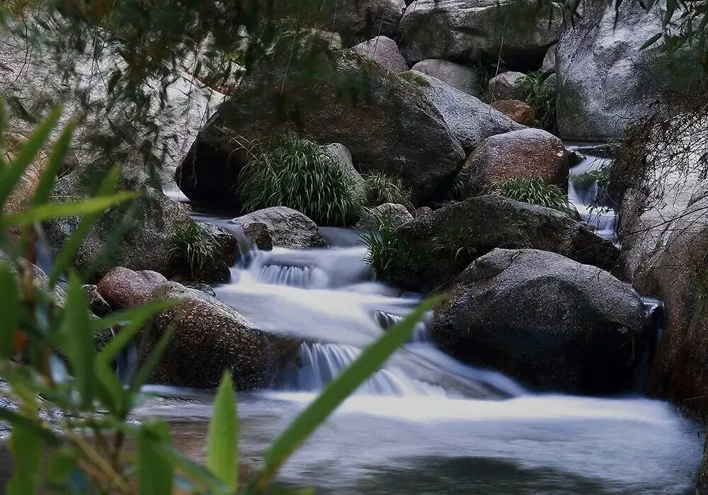 初夏涧水潺潺,瀑流飞泻,奇石遍布