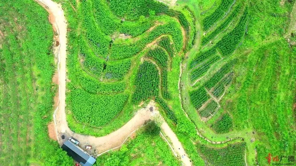 登顶后俯瞰四合全貌,将山川田园尽收眼底