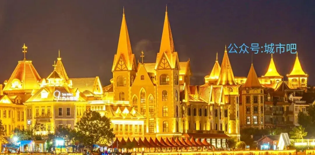限定浪漫:退潮时拍《千与千寻》同款“海上铁轨”(导航滨海中路公交站),欧式城堡亮灯后宛如维多利亚港 ,欧式建筑群灯光与鲸鲨馆光影交织,拍摄“海上布拉格”大片。