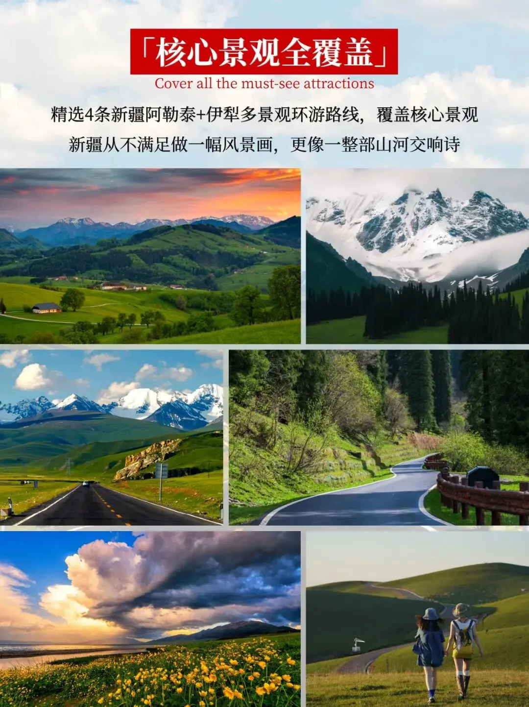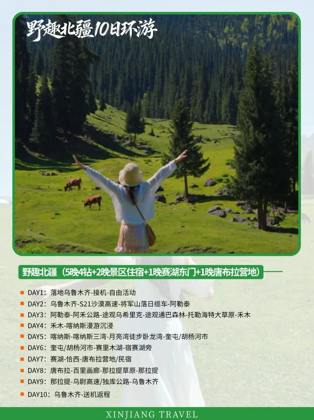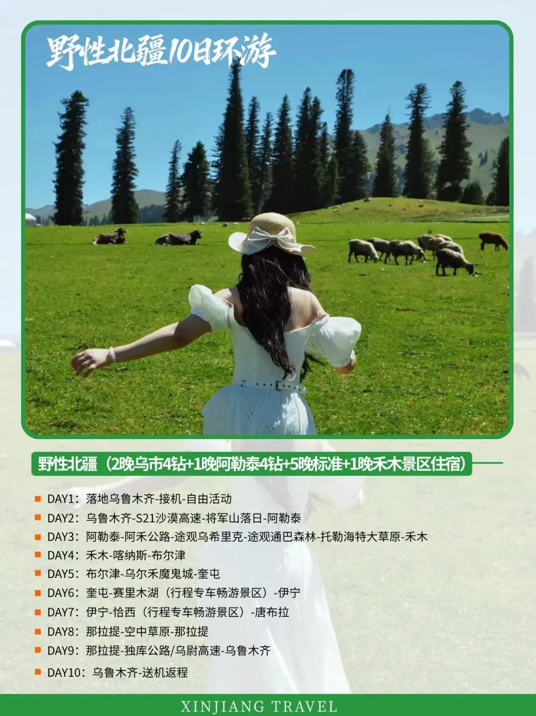 新疆旅游春夏4线超全攻略是谁一搜“新疆旅游攻略”就直接选择困难?阿勒泰还是伊犁?9天还是10天?住禾木还是赛里木湖? 如果你也在纠结路线、玩法和新疆旅游价格,这篇直接帮你理清思路。 我们把阿勒泰+伊犁最经典的4条环线拆解清楚,从入门到高奢,从3k+到6k+,覆盖不同预算和玩法需求。无论你是想选新疆纯玩团,还是更自由的新疆定制游,看完这篇基本就能做决定。 新疆春夏线路最佳时间为5月—9月,其中: ✔5-6月:草原返绿+野花盛开,人少景美 ✔7-8月:风景巅峰期,但人流较多 ✔9月:秋色上线,层林尽染 建议安排9—10天行程,才能完整走完阿勒泰+伊犁环线。这类长线更适合选择新疆纯玩团或新疆定制游,避免长途驾驶疲劳。 线路整体费用(即大家最关心的新疆旅游价格)主要由以下构成: ✔用车(7座/商务车/1+1头等舱) ✔住宿(标准/4钻/5钻/景区民宿/营地) ✔门票(喀纳斯、禾木、赛里木湖、那拉提等) 本次4条线路预算区间: 👉3k+—6k+(不含机票餐食) 属于升级版新疆纯玩团,0购物透明消费;如果对住宿或玩法有更高要求,也可以升级为专属新疆定制游。 4条线路共同包含新疆春夏核心玩法: ✔喀纳斯+禾木原始村落漫游 ✔赛里木湖环湖+日落日出 ✔那拉提草原骑马/深度游 ✔S21沙漠高速+阿禾公路风光 ✔独库公路/乌尉高速双方案 同时还能体验: ✔草原旅拍/换装秀(部分线路) ✔唐布拉/恰西小众草原 ✔魔鬼城、将军山等特色景点 相比普通跟团,这类新疆纯玩团更注重体验;而新疆定制游则可以把这些玩法自由组合、深度升级。 新疆线路长、景点分散,交通是体验关键: ✔2-6人精品小团 ✔豪华7座/大七座/1+1商务车 ✔全程包车,不拼人 这种形式兼具自由行和跟团的优势,是目前最受欢迎的新疆纯玩团玩法;如果人数更多或有特殊需求,可以升级为新疆定制游独立成团。 🗺️ 4条阿勒泰+伊犁环线怎么选: 🏨4钻+禾木景区+舒适酒店混搭 🎯适合:预算有限但想玩全 ✨亮点:9天走完双环线,喀纳斯+禾木+赛湖+那拉提全覆盖 💬总结:入门首选,高性价比新疆旅游攻略模板 🏨舒适型+部分4钻+禾木住宿 🎯适合:时间更充裕,想玩恰西+唐布拉 ✨亮点:多一天更轻松,增加小众草原体验 💬总结:性价比最高的一条新疆纯玩团路线 🏨4钻+景区住宿+赛湖旁+营地 🎯适合:想住进风景、重体验感 ✨亮点:唐布拉营地+换装秀+赛湖近距离入住 💬总结:偏体验型,接近轻奢新疆定制游 🏨5钻+景区民宿+草原营地 🎯适合:预算充足、追求极致体验 ✨亮点:二进赛里木湖+禾木下午茶+景区内住宿 💬总结:高端玩家首选,真正意义上的新疆定制游体验 ✔喀纳斯湖晨雾+禾木木屋村落 ✔赛里木湖蓝冰/碧水+日出日落 ✔那拉提空中草原骑马看雪山 ✔恰西/唐布拉草原小众秘境 ✔果子沟大桥+峡谷雪山同框 不同线路住宿差异较大,也是影响新疆旅游价格核心因素: ✔经济版:舒适型酒店+部分景区住宿 ✔轻奢版:4钻+景区+营地组合 ✔高奢版:5钻+景区内+野奢营地 想住进风景里,建议直接选轻奢或高奢线路,体验差距会非常明显。 ✔证件:身份证必带 ✔穿搭:早晚温差大,建议叠穿 ✔防晒:新疆紫外线强 ✔鞋子:运动鞋/徒步鞋 ✔设备:相机+充电宝 ✔其他:常备药品 ⚠️ 春季特别提醒: ✔独库公路一般6月开放,未开放走乌尉高速 ✔阿禾公路人少景美,不输独库 ✔草原温差大,注意保暖 —— ✔预算有限+第一次去 → 选9日经典版(入门级新疆旅游攻略) ✔想多玩+加小众草原 → 选10日野性版(性价比最高新疆纯玩团) ✔想体验感+拍照出片 → 选10日野趣版(轻奢新疆定制游) ✔预算充足+高品质 → 选10日野奢版(高端新疆定制游) 不管选哪条,本质都是升级版新疆纯玩团玩法,兼顾自由与省心。 选好路线,你的新疆之旅,就已经成功一半了。