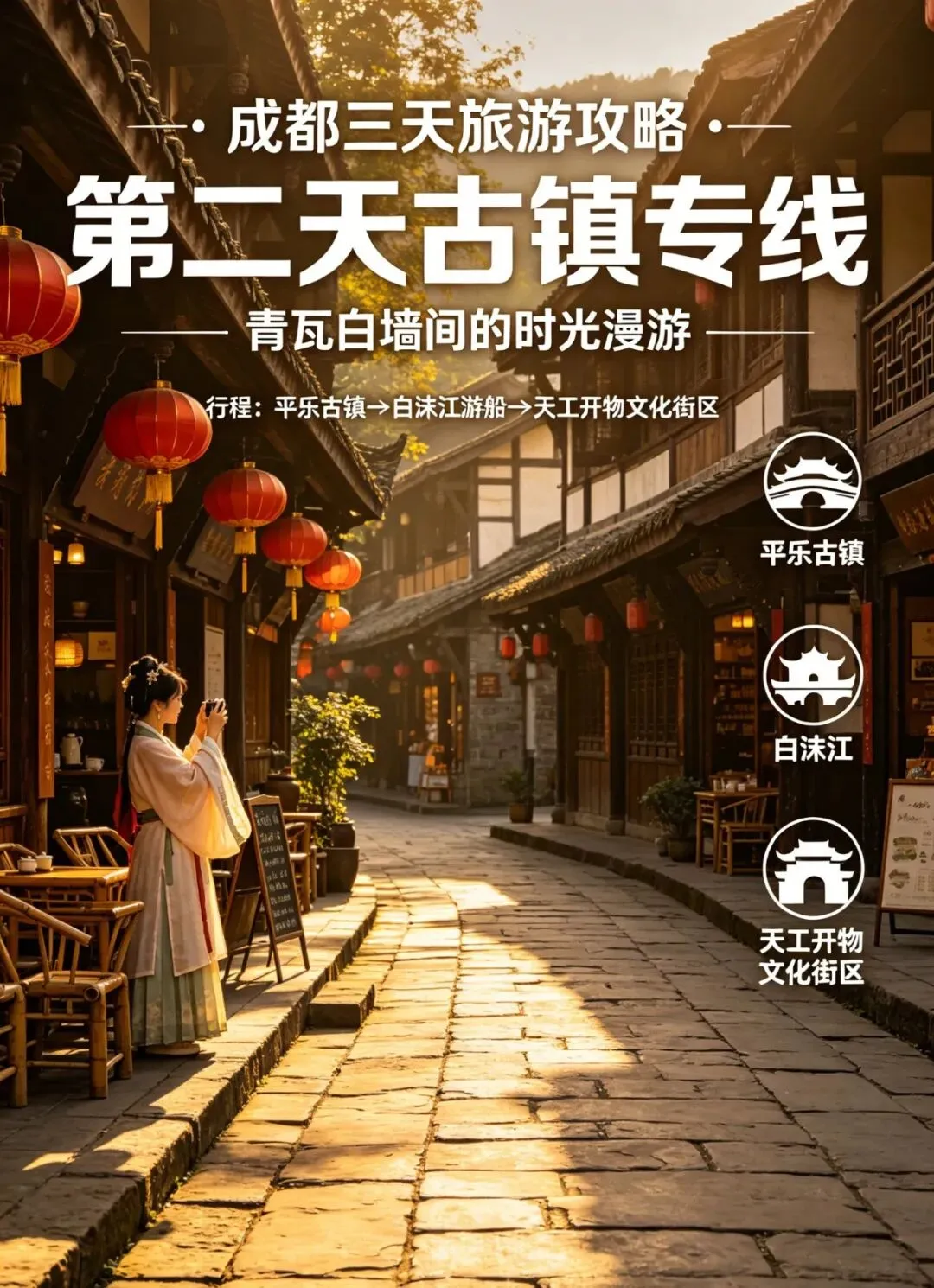核心思路:第一天逛市区经典人文景区,感受成都烟火气;第二天打卡周边热门古镇,沉浸式体验川西古村风情;第三天解锁自然山水与道韵文化,劳逸结合不赶趟。全程标注交通方式、门票信息、游玩时长及注意事项,新手可直接照搬,省时又省心。