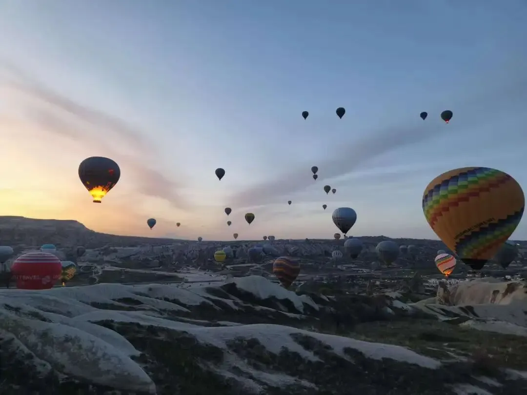 不过卡帕的热气球受限于天气,不是每天都飞。需要提前在官网看好消息。热气球飞行时间是日出前半小时,那个时间点气流相对比较稳定,安全性高。我们这次的首飞时间在5点半左右。不得不说,天是真的冷啊。羽绒服必须焊死在身上。费用一直在波动,幅度很大,这两天在50欧左右。如果卡帕的没坐上,棉花堡也有热气球,虽然和卡帕的没得比,但我觉得退而求其次也是可以的。
