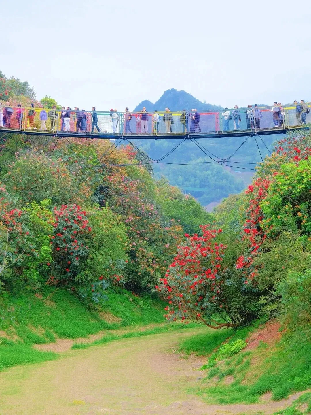 ✅索玛花桥:网红悬空吊桥,漫步花海之上,桥的另外一侧可拍桥与万花楼同框