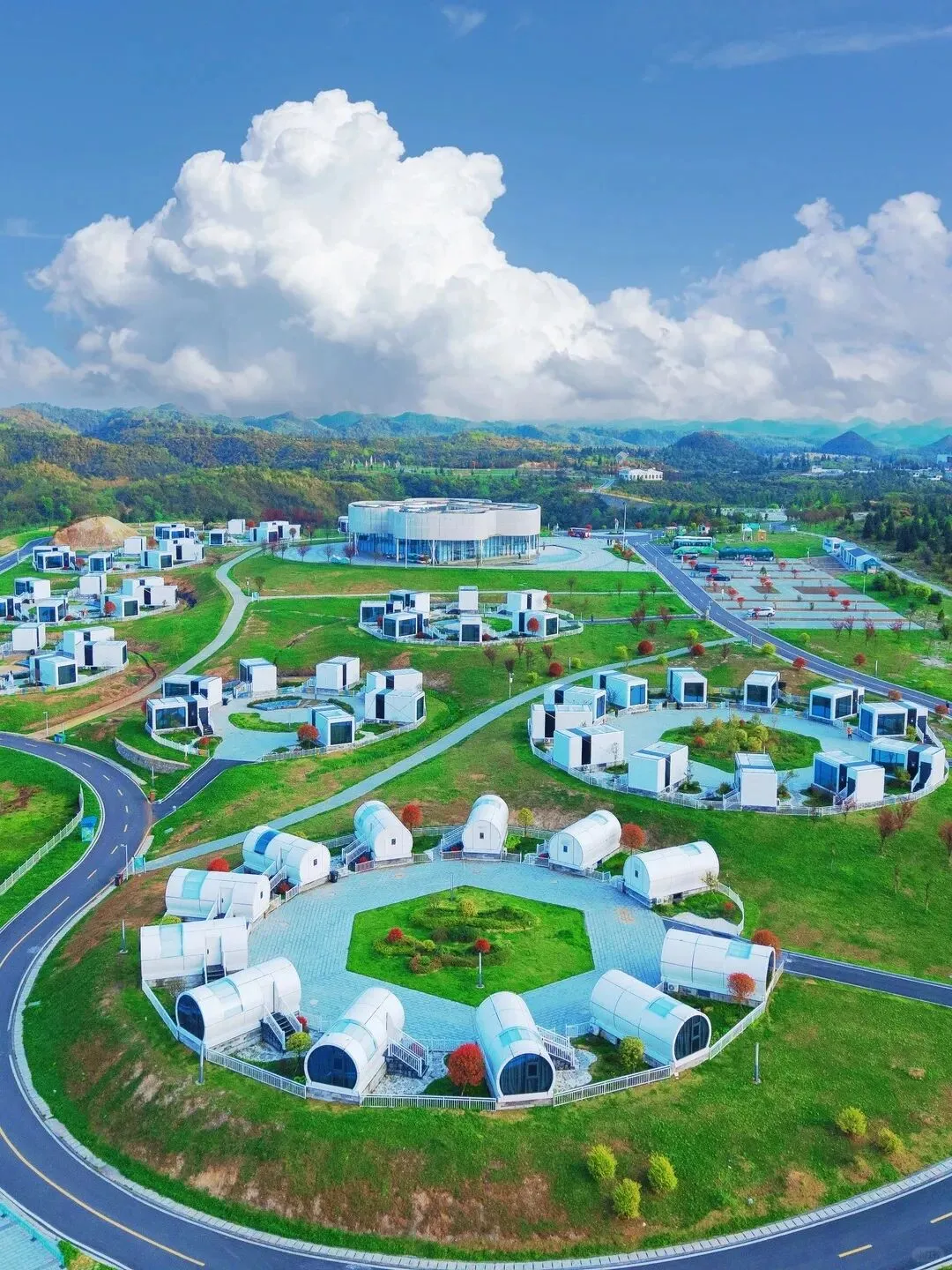 住百里云端国际康养露营基地,外观像外星太空舱,星空穹顶房太绝,躺在床上就能看漫天繁星。
