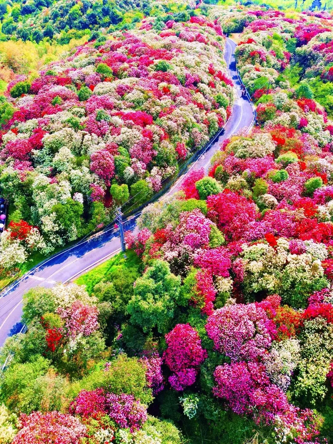 漫山的百里杜鹃顺着山势肆意绽放