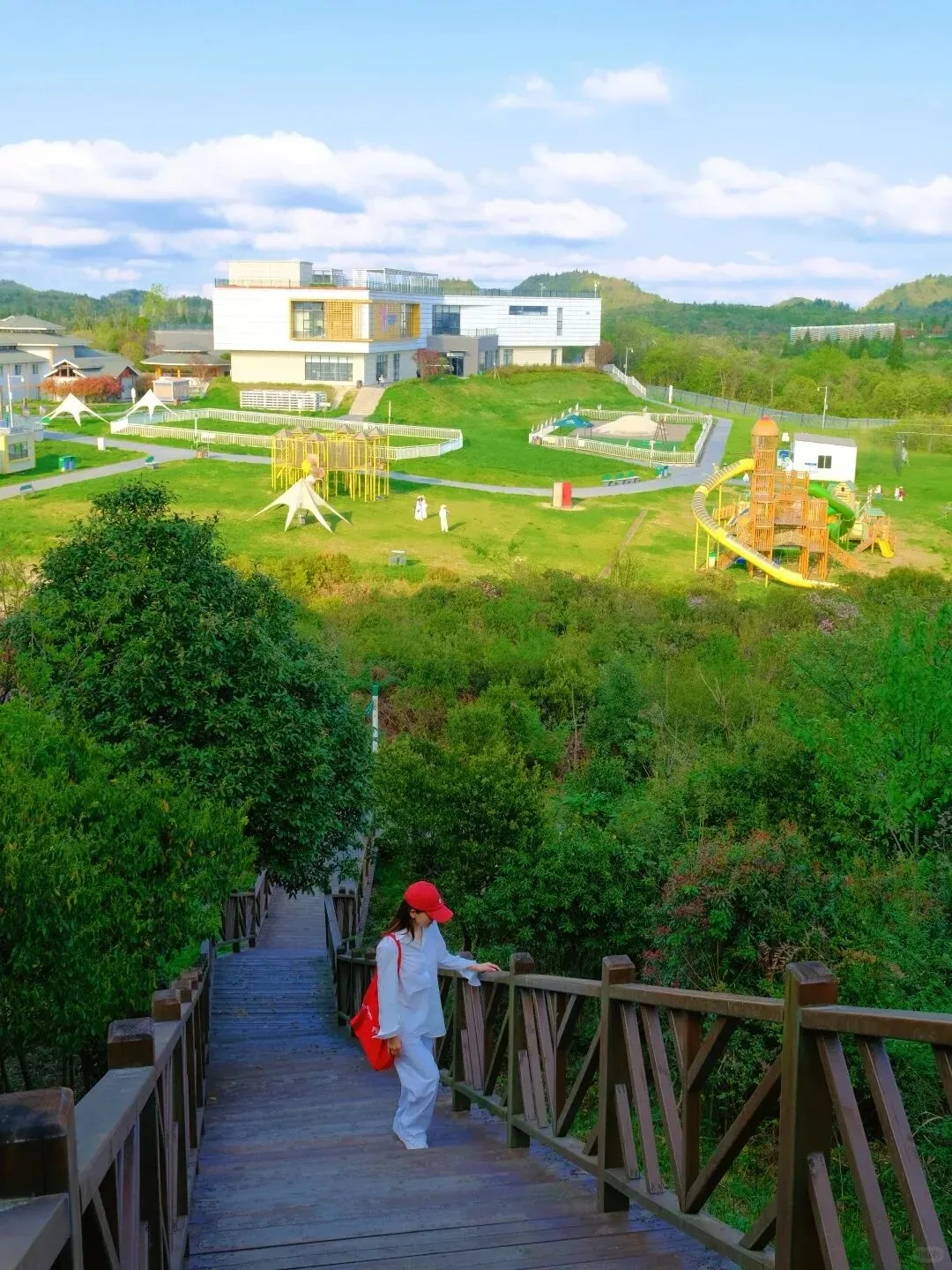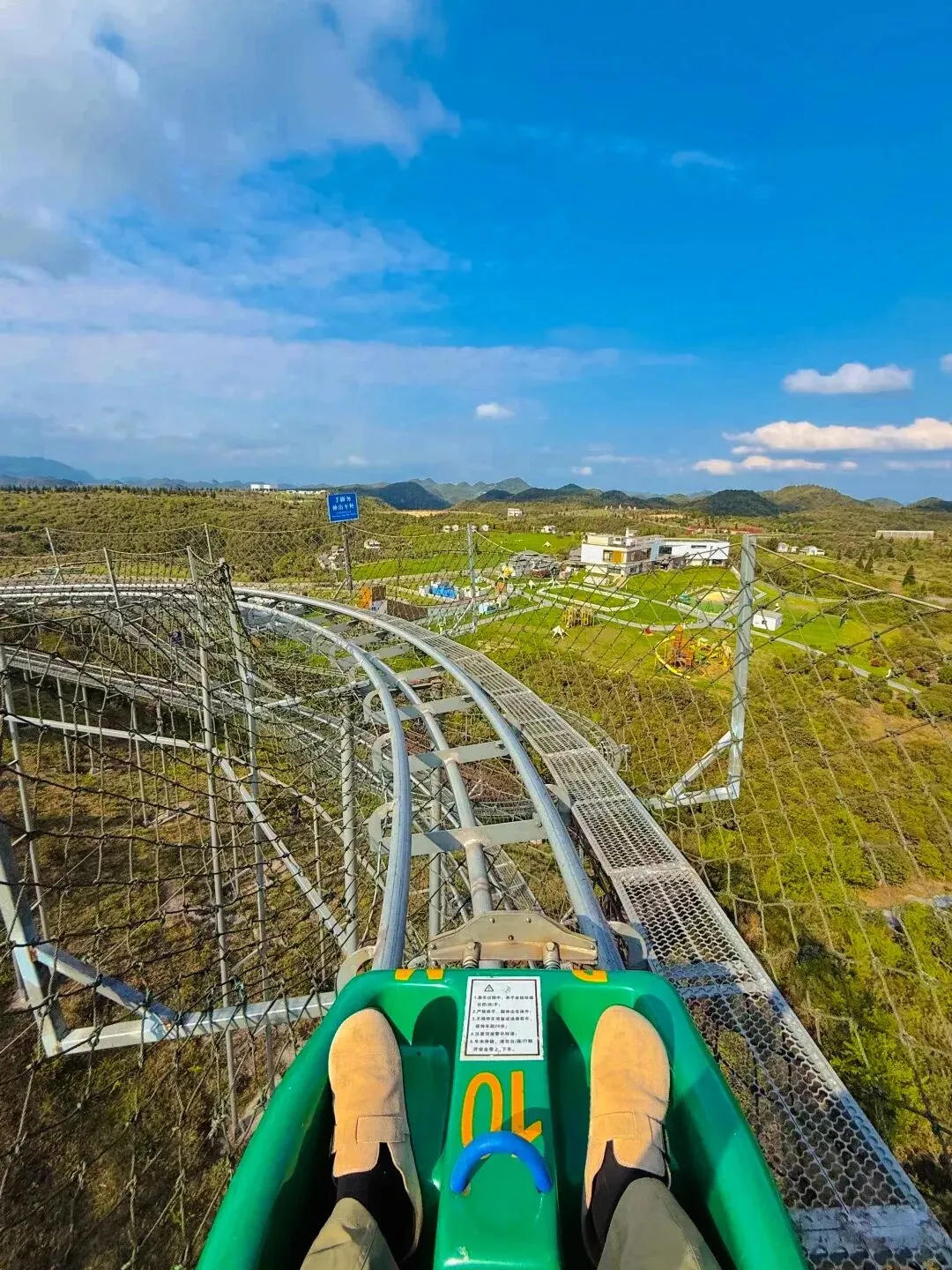 依山而建的管轨滑车超好玩,速度平缓,沿途看山野风光,忍不住要二刷!还有网兜吊桥,晃悠悠的超有挑战趣味~