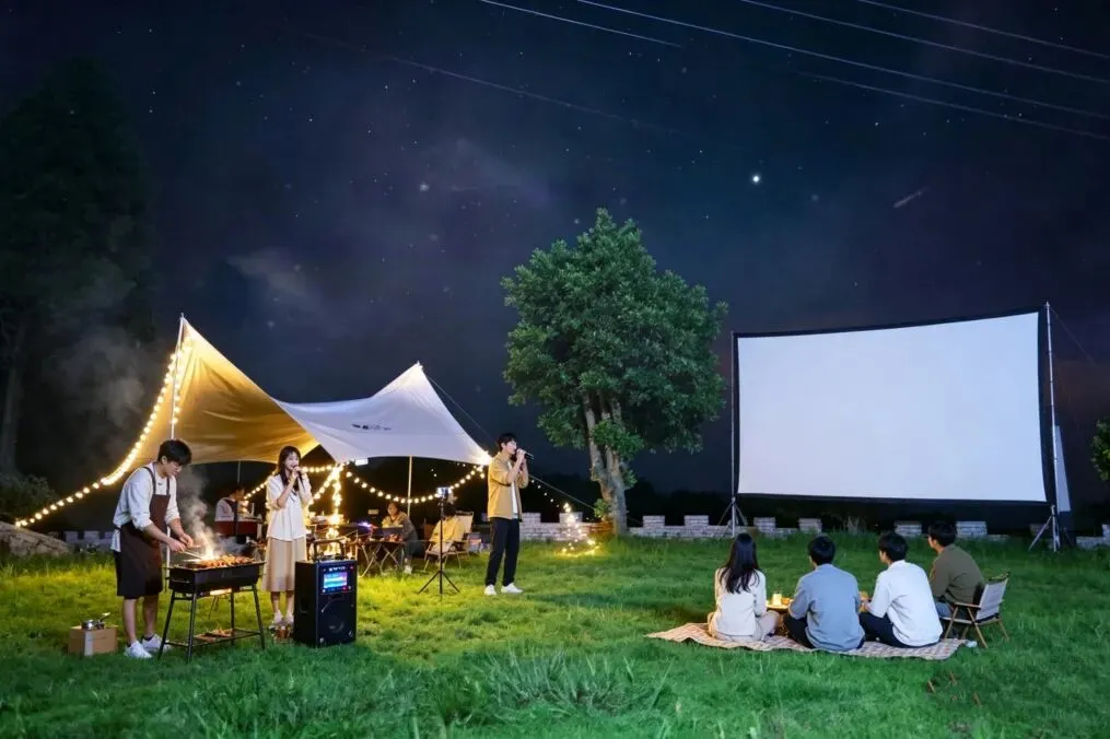 来影珠山影宿赴一场星空之约!当夜幕垂落,山野成了我们的狂欢场。美味的烧烤滋滋冒香,露天电影在星光下流淌浪漫,KTV的歌声伴着晚风回荡。抬头是漫天星河,低头是烟火人间,这场山野派对,把疲惫都烤进了烟火里,只剩快乐与星光作伴。