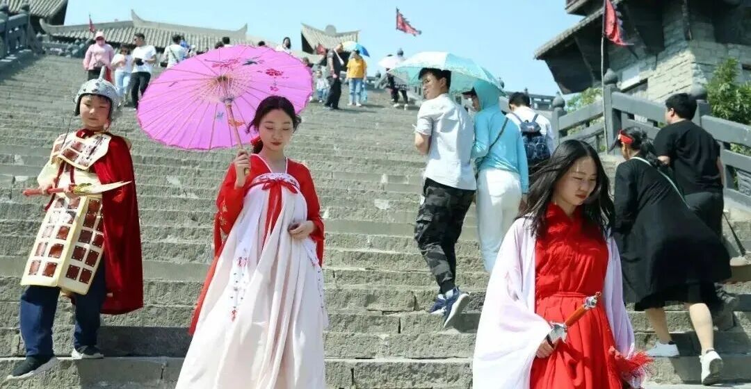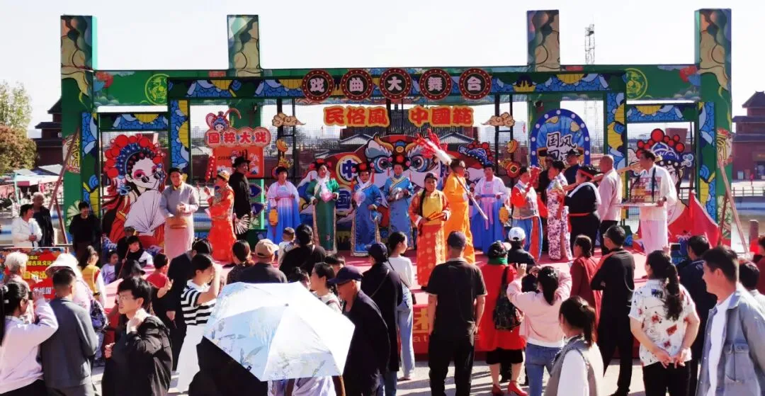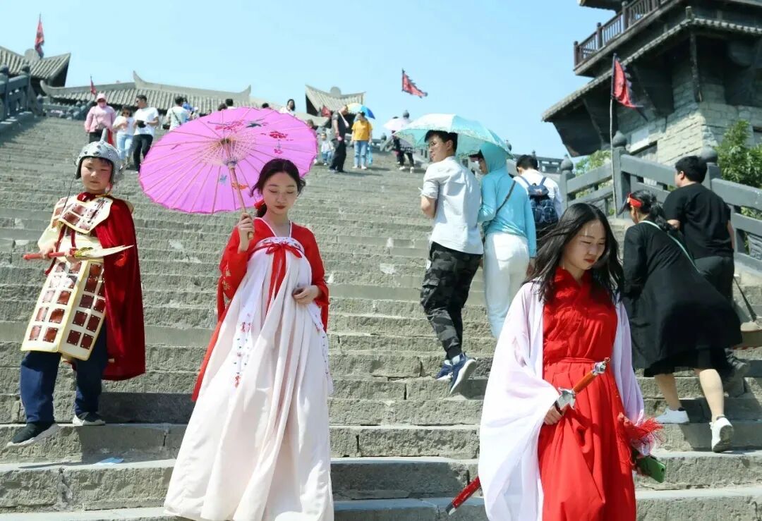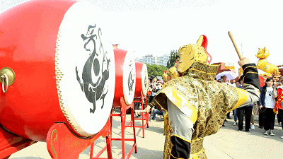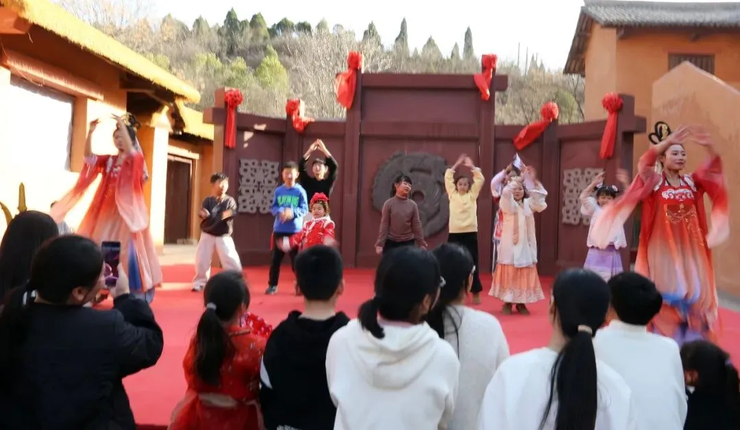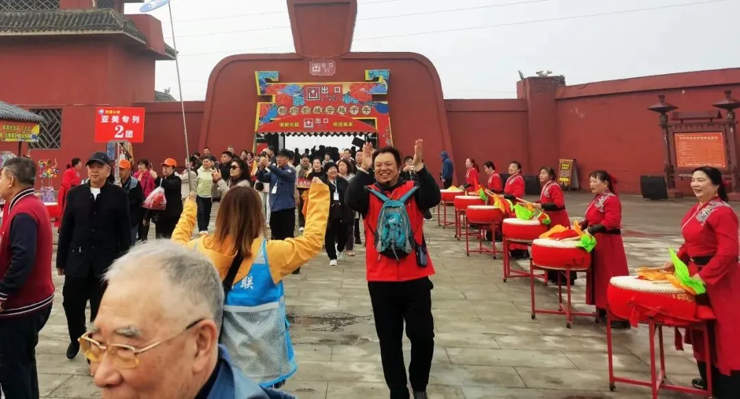 在景区城门外广场,威风锣鼓,列队迎宾,搭配传统民俗表演,营造热烈喜庆的节日氛围,喜迎贵宾入城。