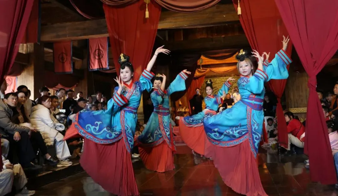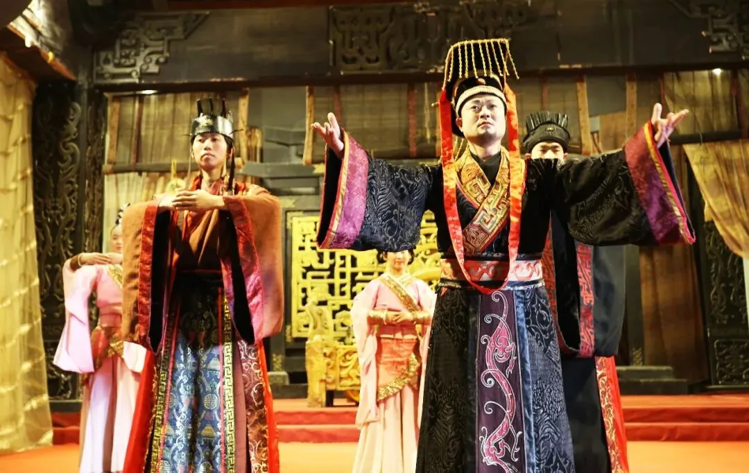 在楚王宫大殿上演宫廷舞蹈表演,展现古代宫廷艺术魅力,为游客带来高端古风视觉盛宴。