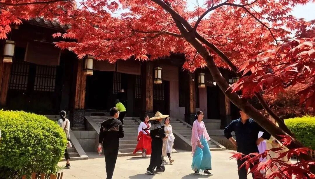 在景区设置多处特色国风打卡点,包括网红打卡墙、网红许愿球、七彩连廊、汉服变装馆、古风庭院等,搭配古风道具、装饰布景,打造高颜值出片场景。
