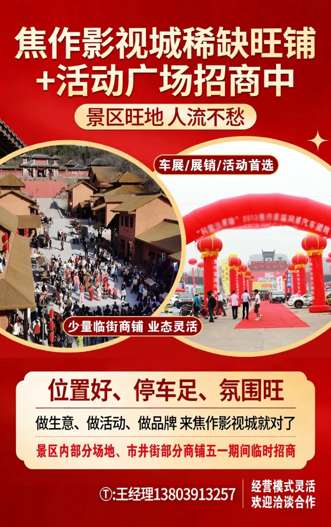 焦作影视城市井街和主游线部分黄金旺铺现对外招租。