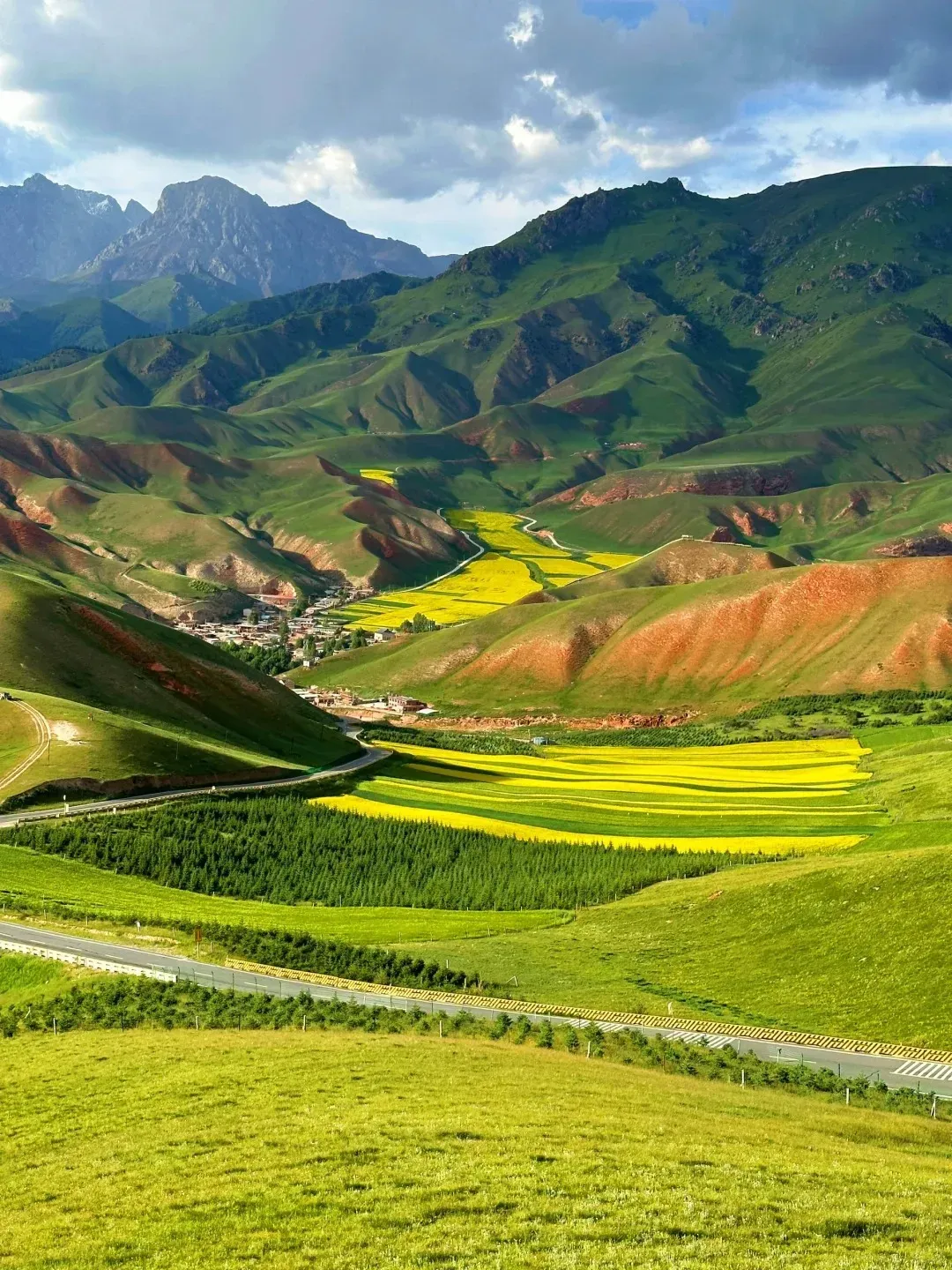 大西北最佳旅行时间是每年的6-9月,这个时候,雪山融化,盐湖湖水更清澈,草原绿了,成片成片的油菜花也开了。