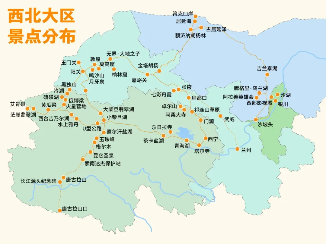 那么西北的旅行景点有哪些,一张图给你讲清楚!