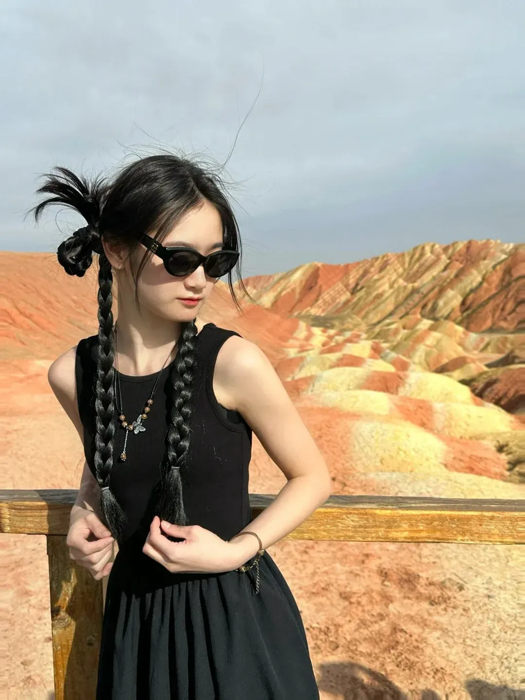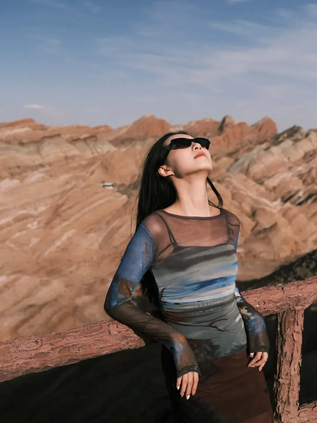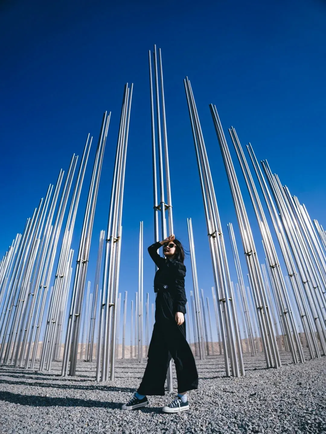 划重点:首先拍摄背景一定要辽阔!其次建议使用广角镜头,全身照更佳!做一个酷酷的女孩子也很棒!