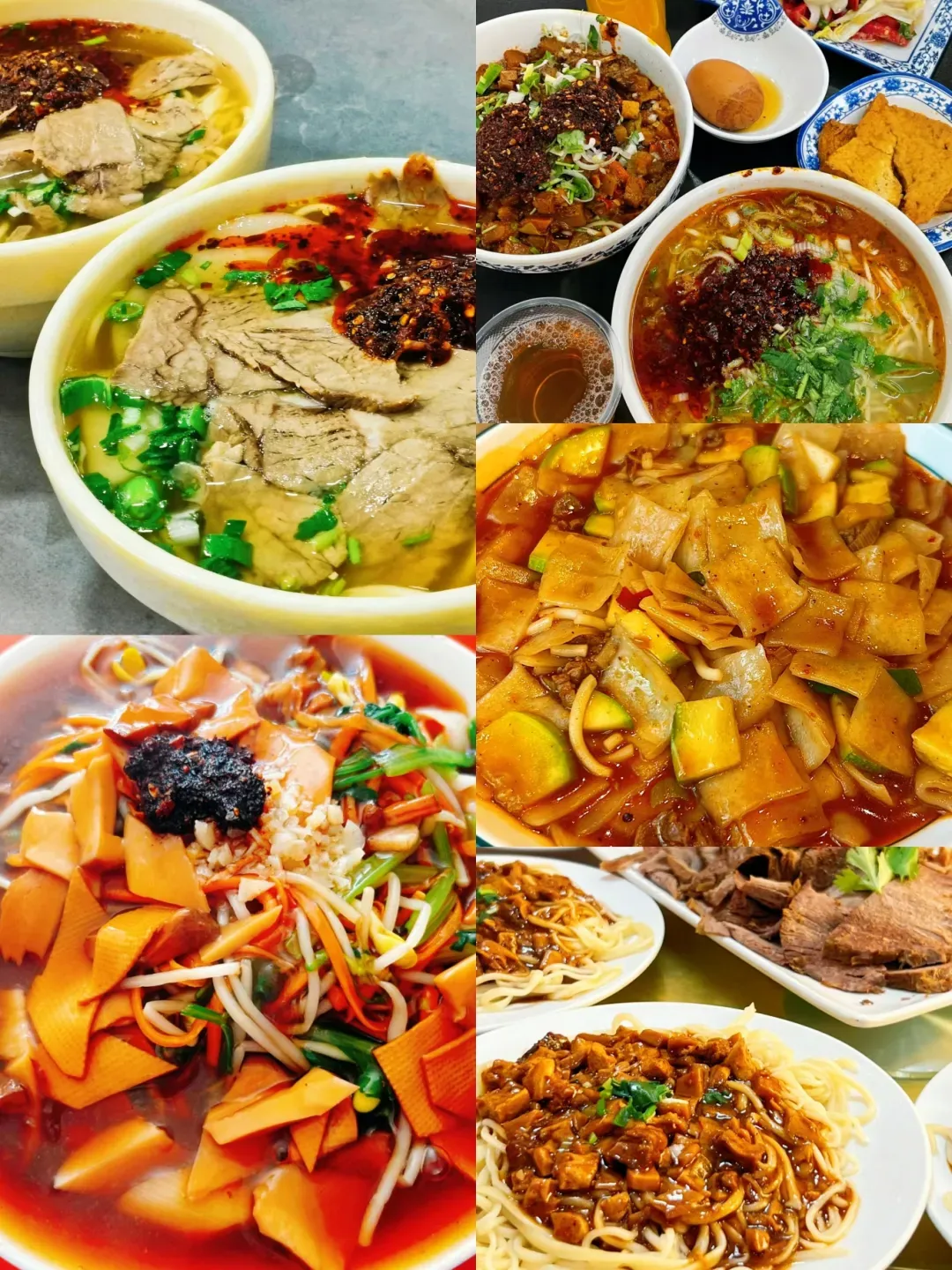 除了声名远扬的牛肉面,还有天水的浆水面,敦煌的驴肉黄面,家常的臊子面,武威的凉州行面,白银的大肉面……吃得心满意足!