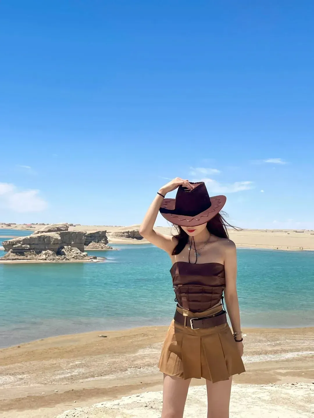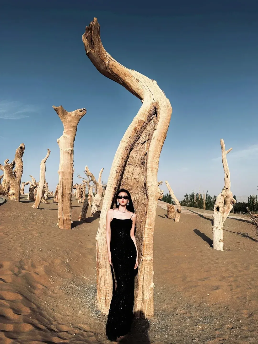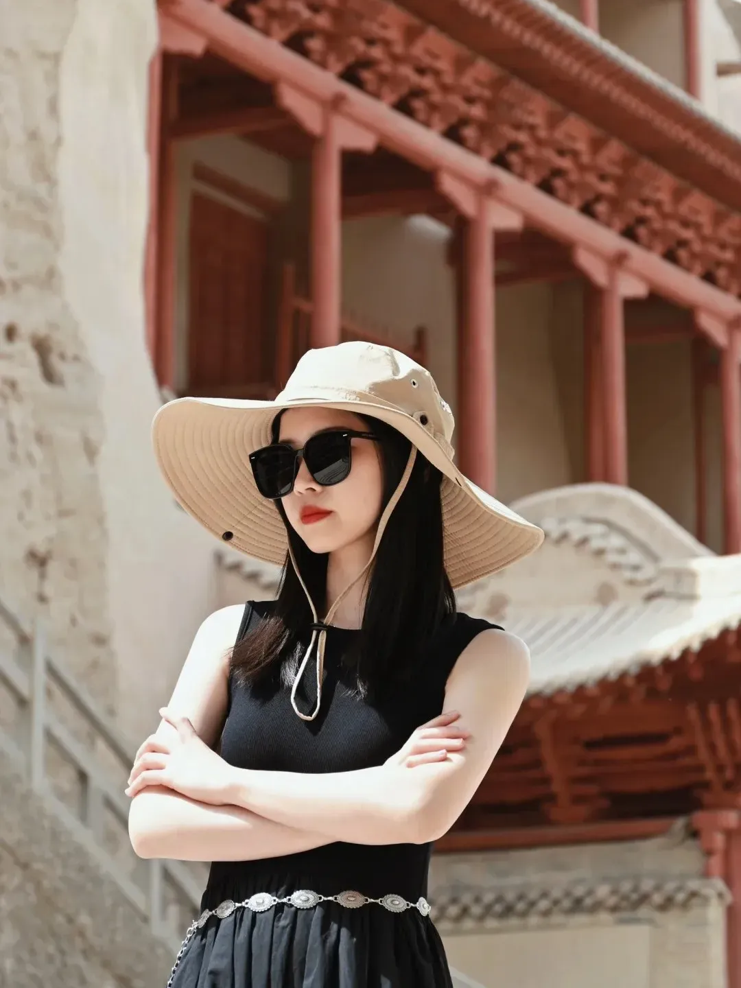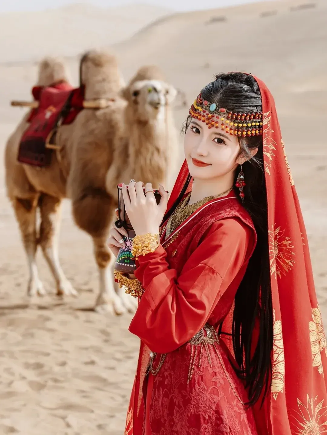 划重点:推荐搭配黑色、红色、和民族风的古典服饰。在沙漠,深红、艳红、酒红都足以让你聚焦所有人的目光。