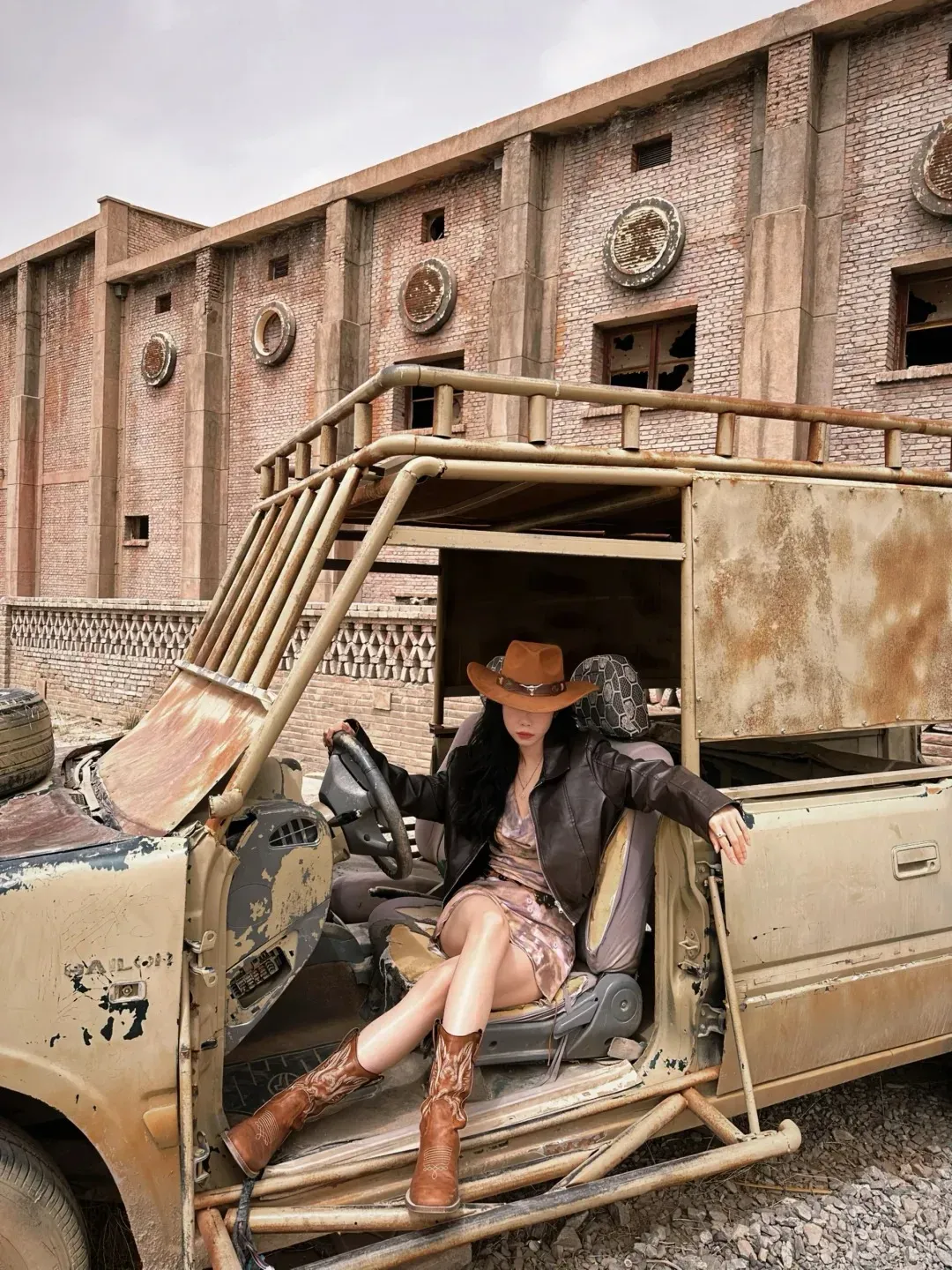 工装风衣服也可以,加墨镜、牛仔帽更炫酷!要想要神秘感可拍摄背影照、侧面照!