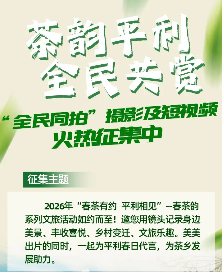 活动内容:用镜头记录茶乡平利周边美景、丰收喜悦、乡村变迁、文旅乐趣,为平利代言,为茶乡发展助力。