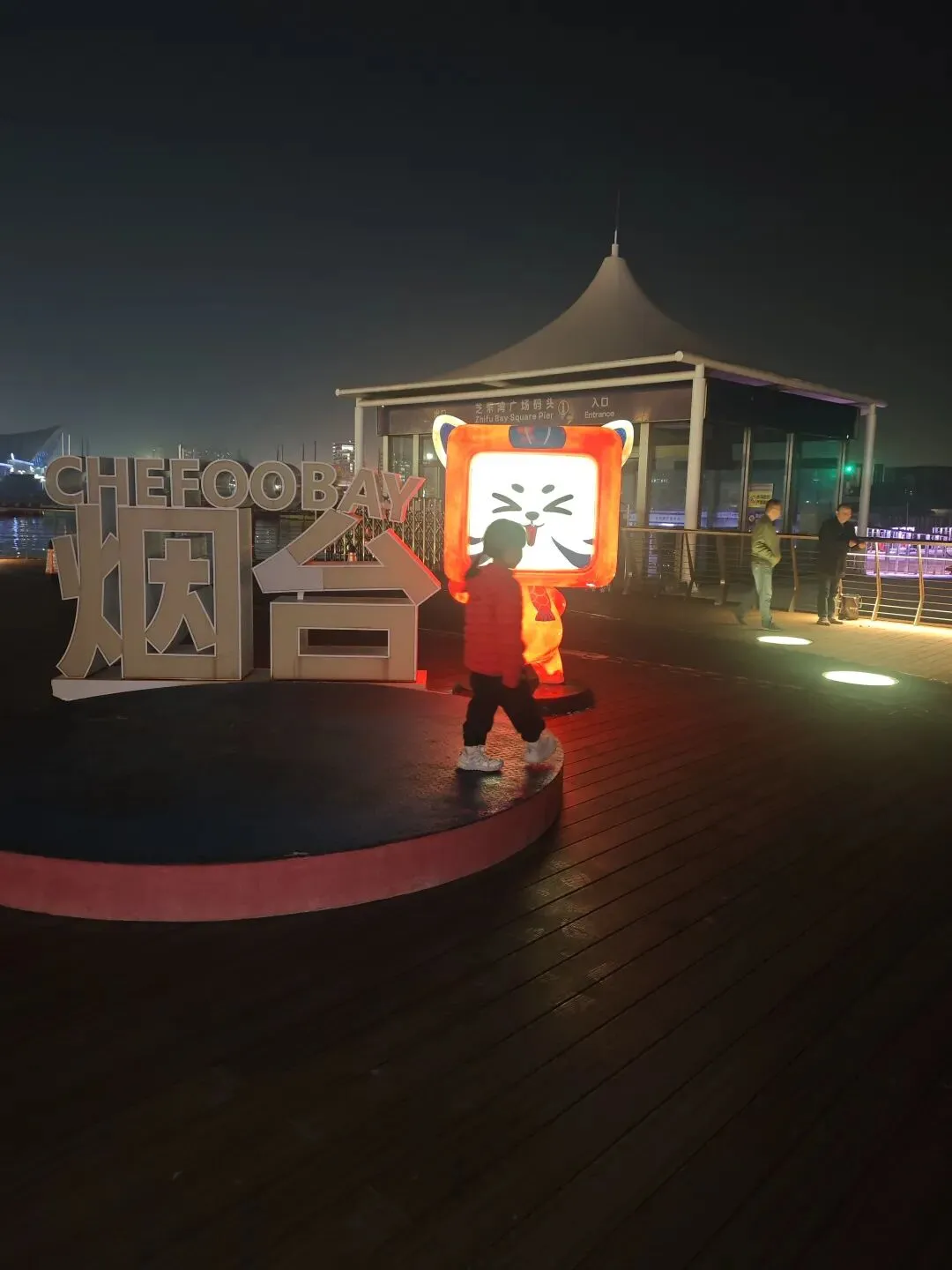 吃完饭我们仍然兴致不减,出去逛了逛,才发现一直以来都“小看了”芝罘湾广场,这里景色真是不错,建筑、装修都很有感觉。虽然不能玩沙子,但是沿着海边的木栈道边走边听海也很有感觉,内心十分平静。还建了两个码头,可以乘坐轮船,轮船也装饰的很有网红风,特别适合打卡拍照。