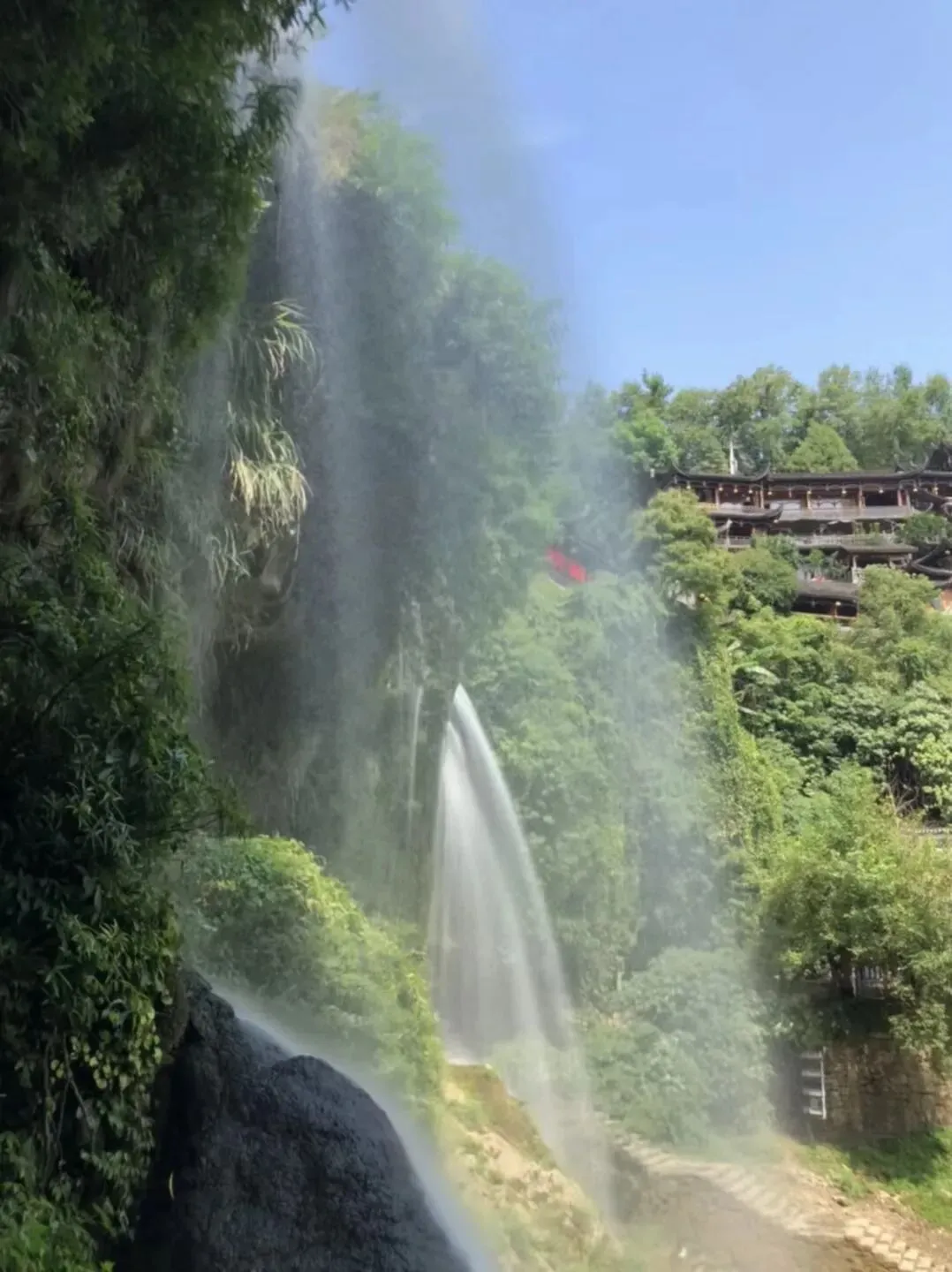 · 清晨:趁旅行团没到,去瀑布底下走一圈(“听瀑路”),水雾扑面,拍人像绝了