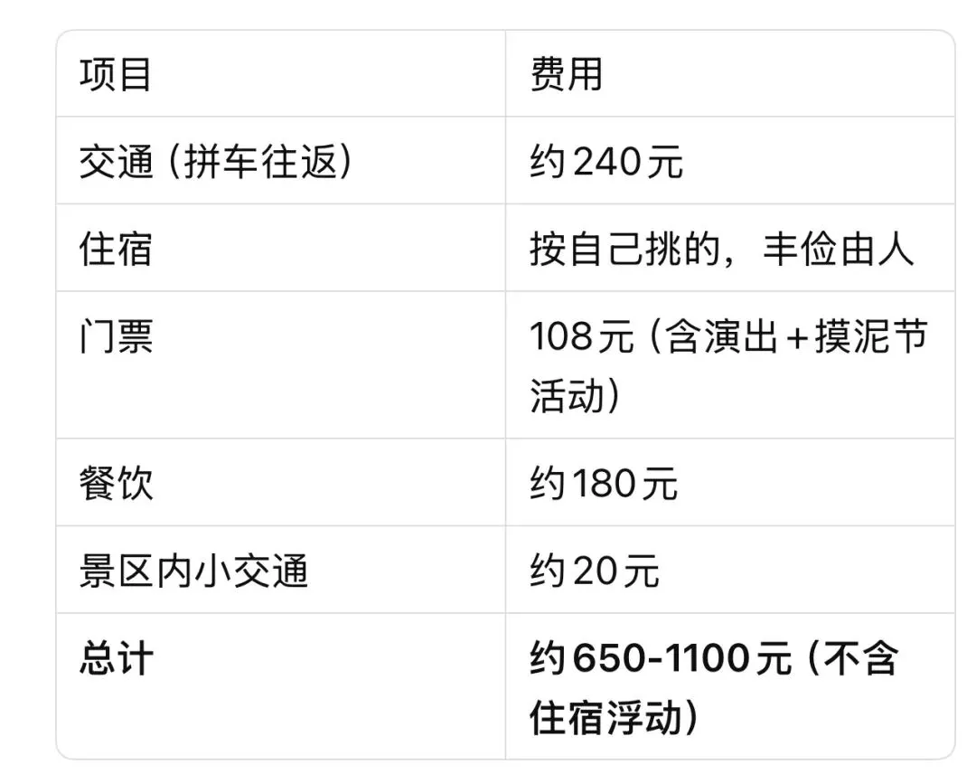 💰 人均预算(2天1晚,长沙出发)