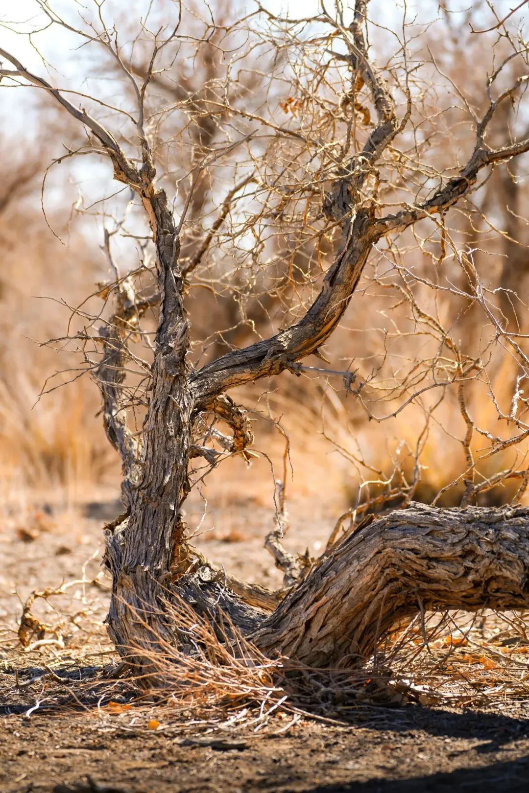 从白杨河大峡谷出来后,我们又专程深入了一片更原始的胡杨林区。这里的胡杨树龄达百年至千年,胡杨“生而千年不死,死而千年不倒,倒而千年不朽”,站在林中能强烈感受到生命的力量。