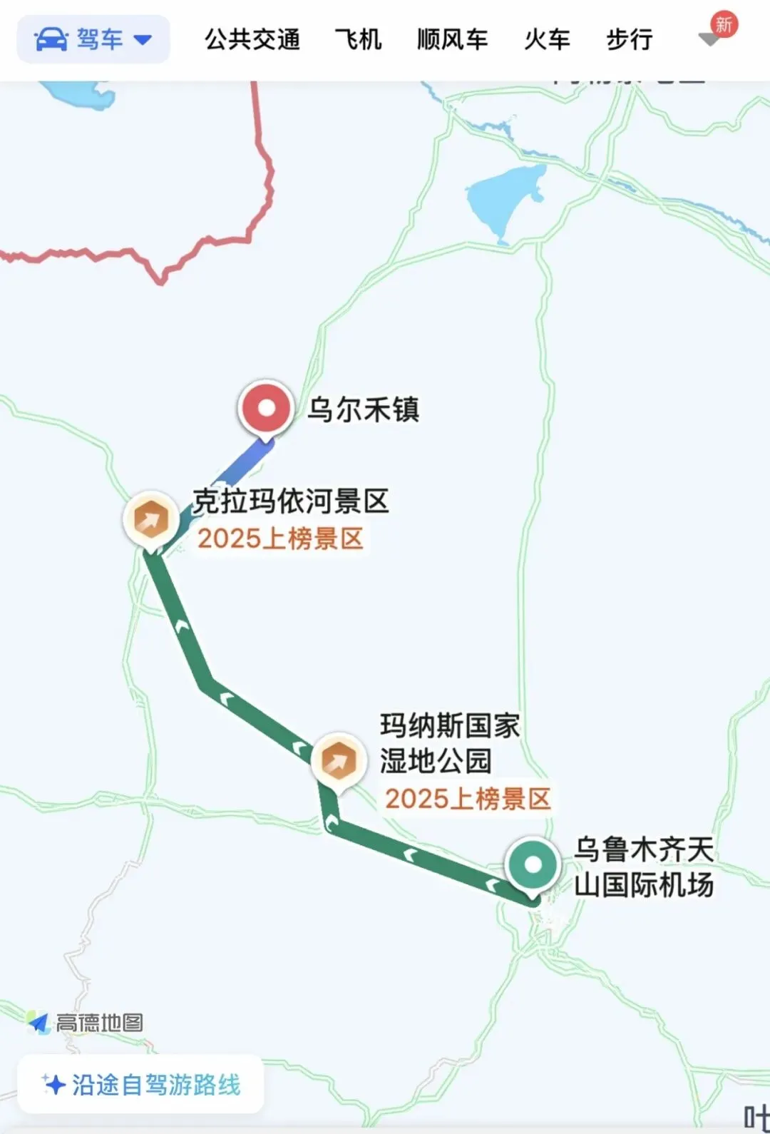 我们这次是直接航班落地到克拉玛依,然后到乌尔禾景区,如果想来自驾游的话,不建议大家直接从出发地开车,太远了,基本都好几千公里。我建议大家可以直飞到乌鲁木齐,落地乌鲁木齐天山机场,然后开上咱们吉利中国星车型,一路自驾到乌尔禾,距离400多公里,沿路也有很多景点可以看看。