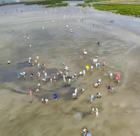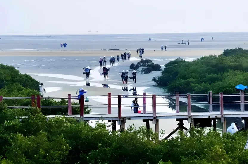 第六站:红树林天天赶海来北海不赶海等于白来!这里是全国最大的红树林保护区之一,不仅能看到招潮蟹和弹涂鱼,还能看到白鹭飞翔。推荐买“赶海体验票”,包含工具租赁(铲子、耙子、小桶)。最佳时间是农历初一或十五的大潮期,下午退潮时去。记得带双高筒雨靴,泥滩里很容易陷脚。抓上来的小螃蟹可以直接在旁边的烤炉加工,鲜甜无比。