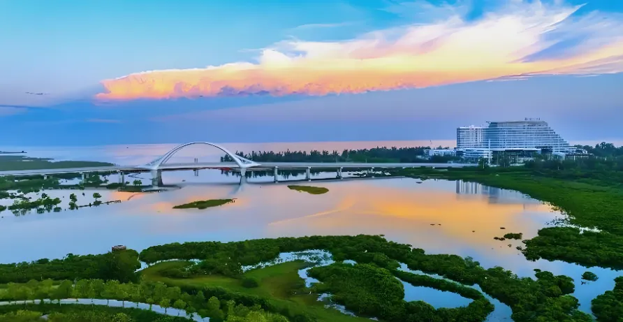 第九站:冯家江湿地公园这是北海的“城市绿肺”,也是2026年刚火起来的新地标。这里有一座超长的跨海大桥,桥下就是湿地,水上森林特别壮观。这里是看日出的绝佳地点,早上5点半到6点,水雾缭绕,像仙境一样。公园很大,建议租一辆共享单车骑行,微风拂面,全是负氧离子,特别治愈。