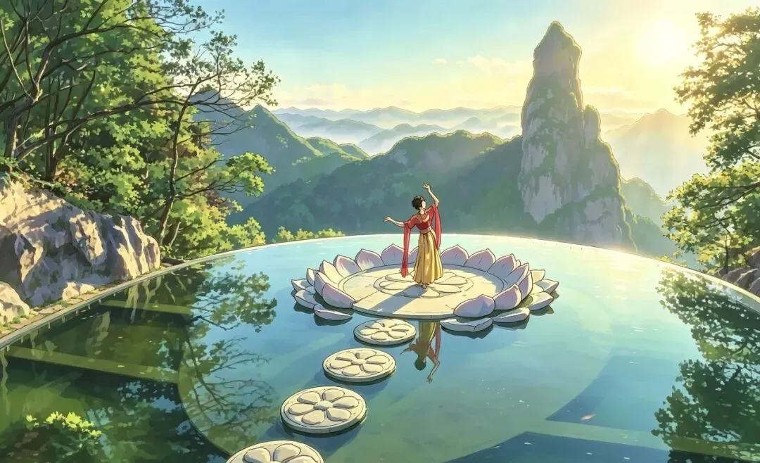 美景亮点:莲花造型镜面观景台,水雾弥漫时与观音峰同框,阳光斜照形成“佛光”倒影,仙气与禅意拉满。
