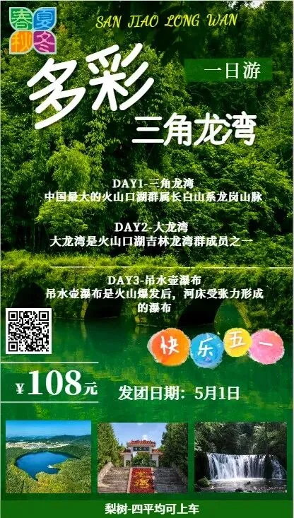 5月1日,人间仙境秀美吉林通化三角龙湾景区一日游 ,独属于吉林的山水画卷,奇峰,云海,瀑布,火山湖泊,峡谷幽幽。这个五一,暂别城市喧嚣,在龙湾的峡谷秘境中,寻找心灵的栖息地