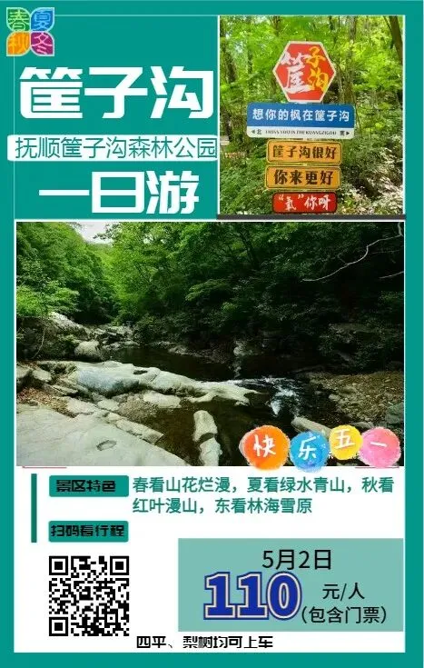 5月2日|辽宁抚顺筐子沟景区一日游,景区内一条河流贯穿南北,清澈见底,川流不息,风景秀美,景色宜人,被游人们称为山水画廊,养生天堂