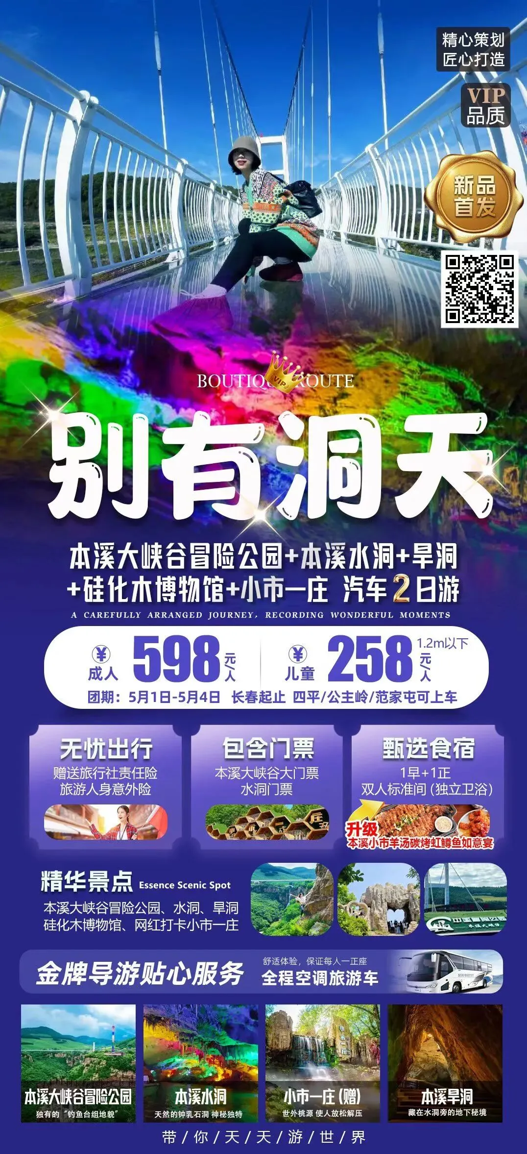 本溪大峡谷+本溪水洞+旱洞+地质博物馆+网红小市一庄