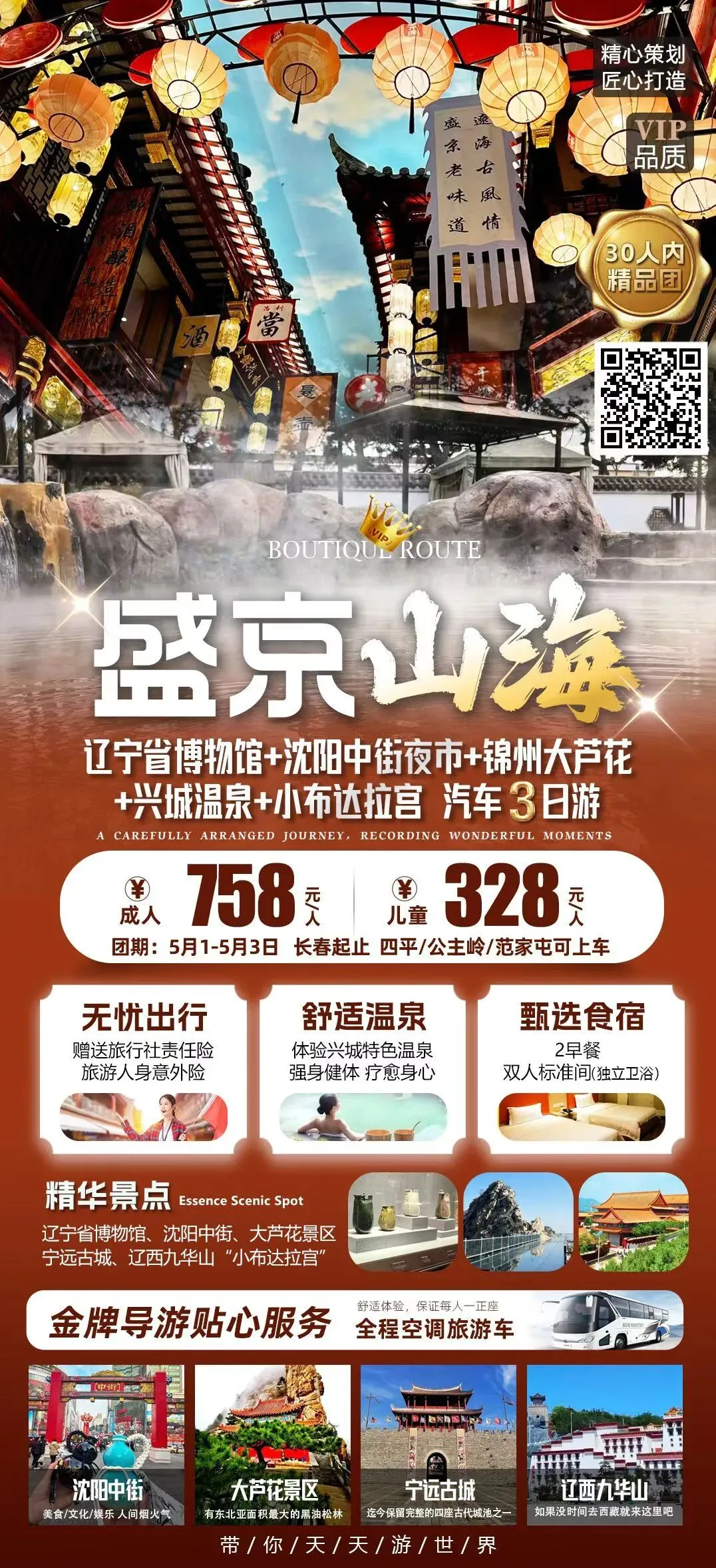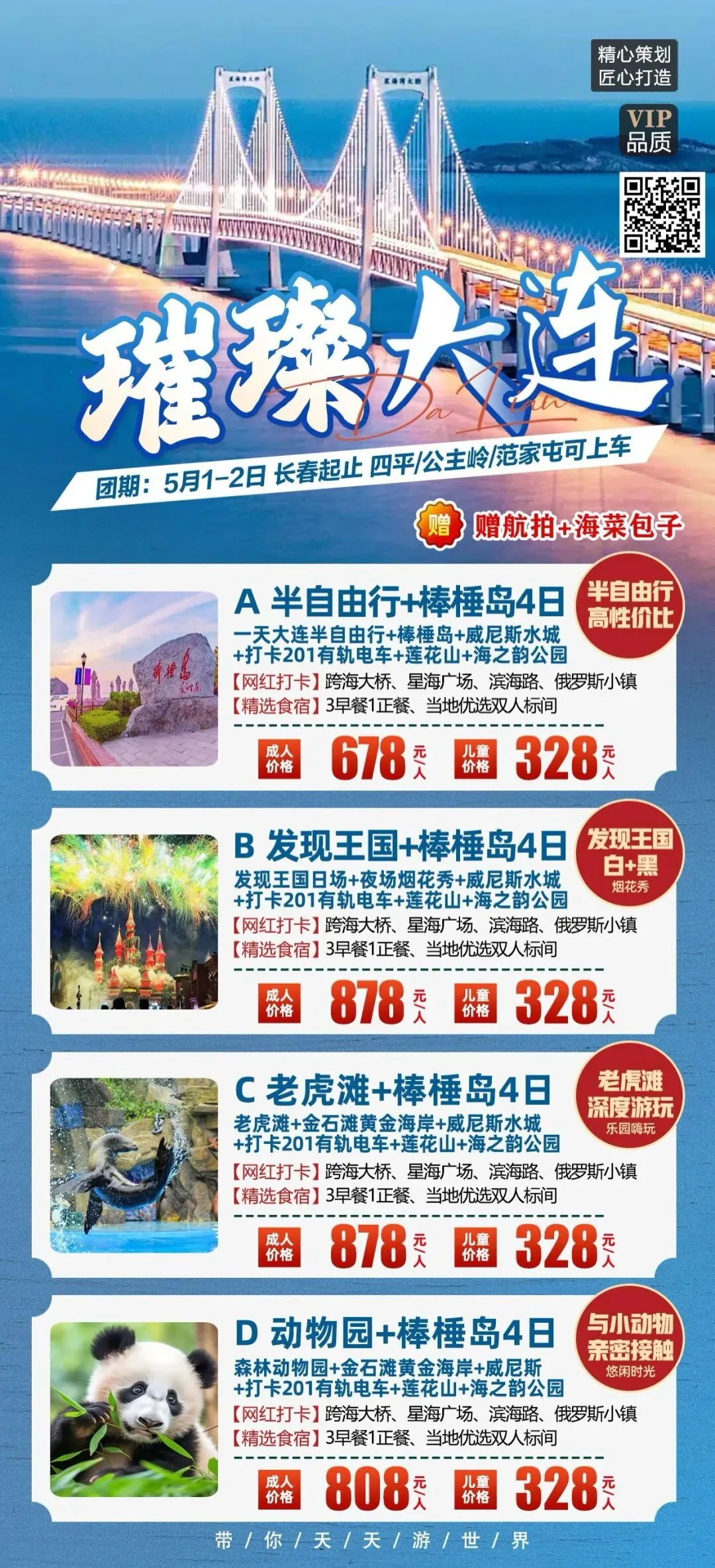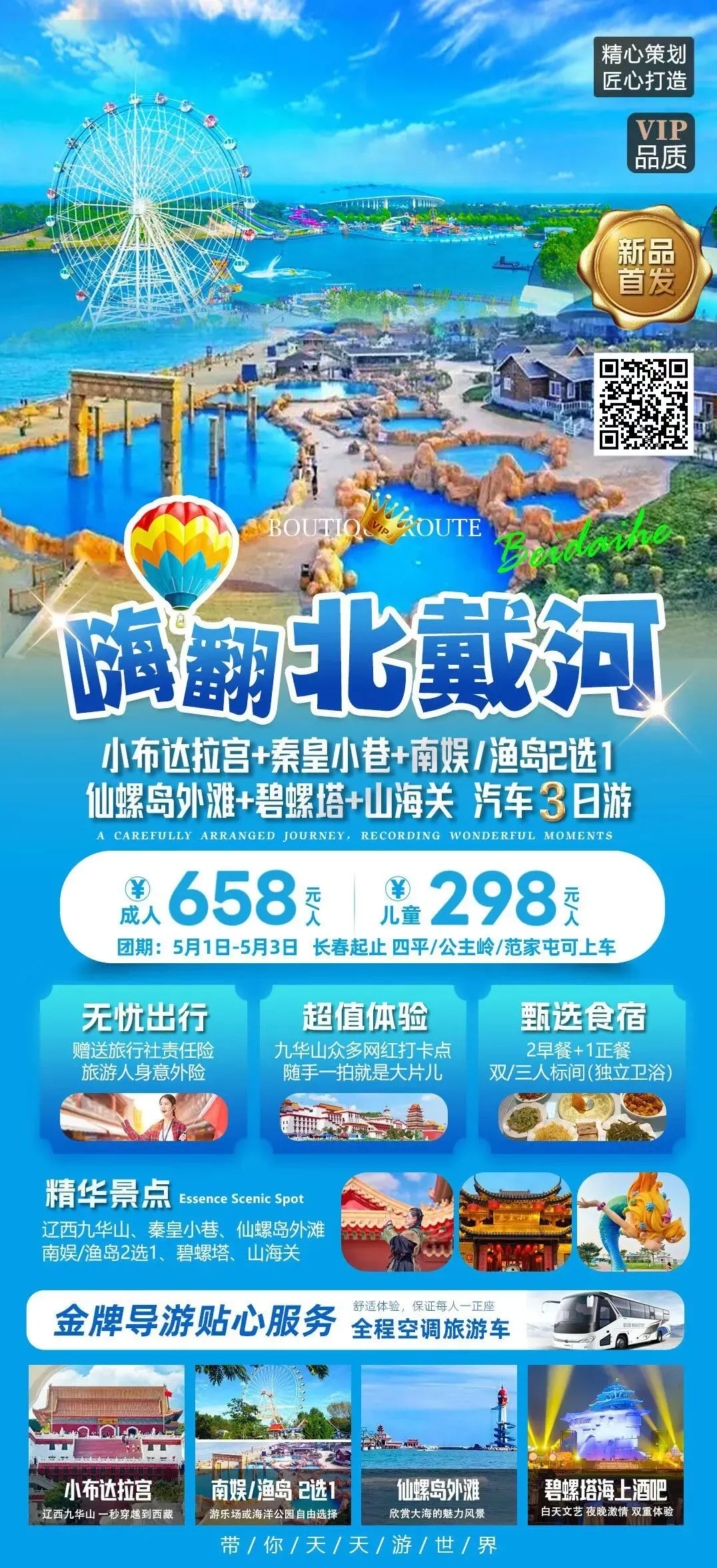 春风拂遍辽吉大地,五一假期正是踏春好时节!从大连的山海秘境,到沈阳、丹东的人文风情,再到锦州、本溪、锦州、北戴河、秦皇岛、天津、承德的自然野趣,多条纯玩线路覆盖一日至四日游,0 购物、高性价比,承包你的完美假期✨