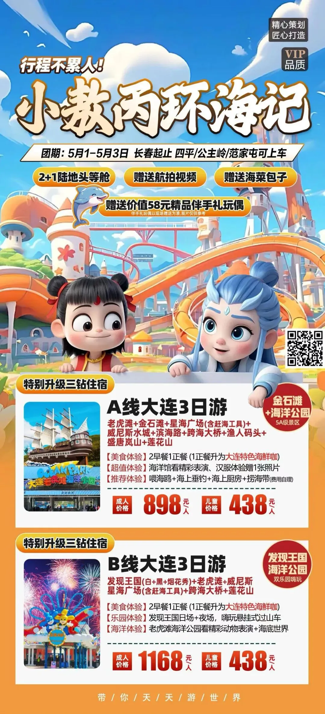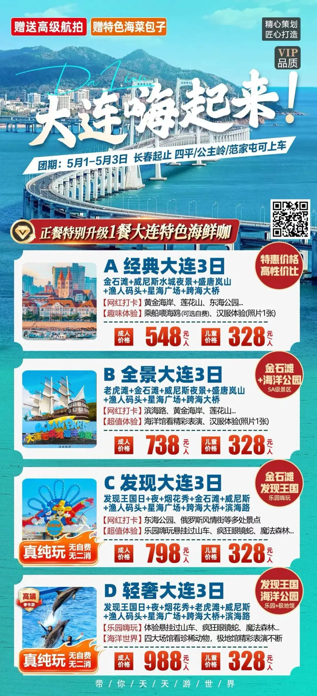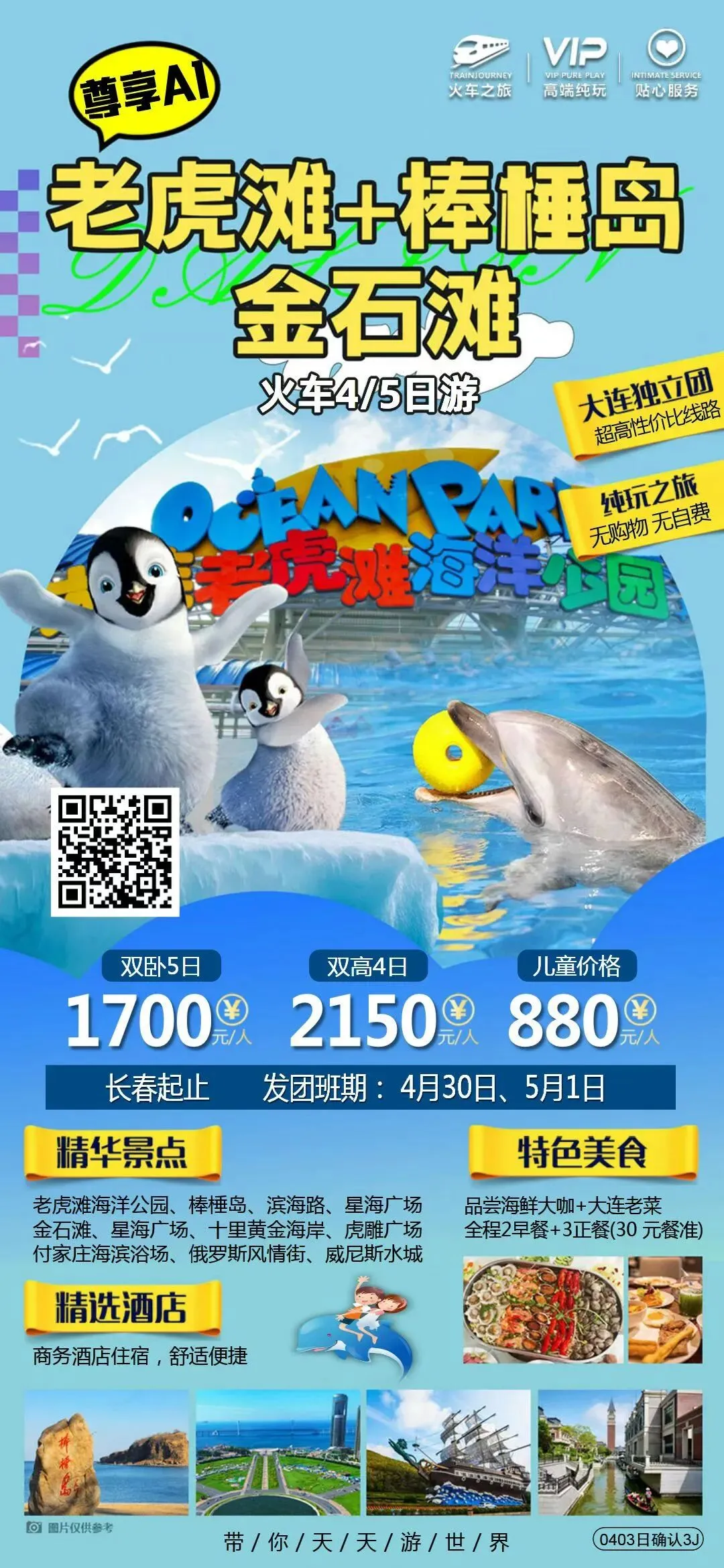 📍 精华景点全覆盖:老虎滩海洋公园、棒棰岛、金石滩、发现王国、森林动物园、星海广场、滨海路、威尼斯水城…大连必玩地标多种搭配!